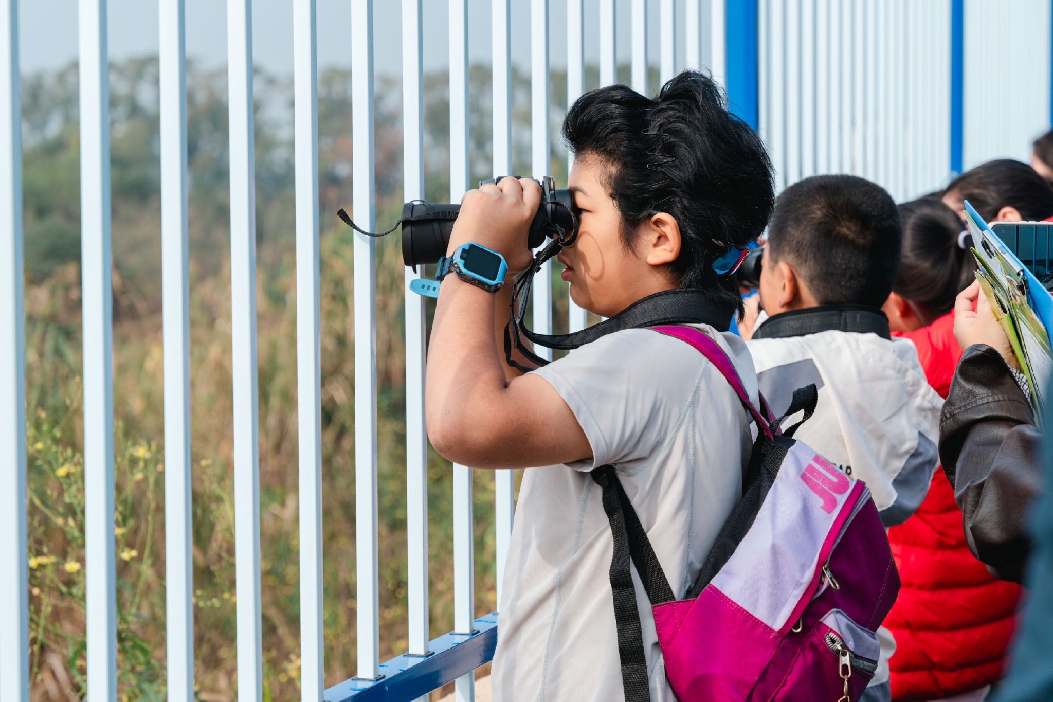 “大家放慢脚步,注意看前方浅滩——那几只白色的鸟就是白鹭,它们的嘴又尖又长,站在水里一动不动,是在等小鱼游过来。”“小天鹅的脖子比大天鹅短一些,飞行时翅膀会发出‘呼呼’的声音。”本次活动中,最令人期待的便是观鸟体验环节,60余组家庭被分为4个小组,沿着4条精心规划的路线向湖畔出发,每组都配备了专业观鸟导赏员与望远镜。行进途中,导赏员压低声音,一边调整望远镜角度,一边向小朋友们讲解观测到的鸟类的习性。