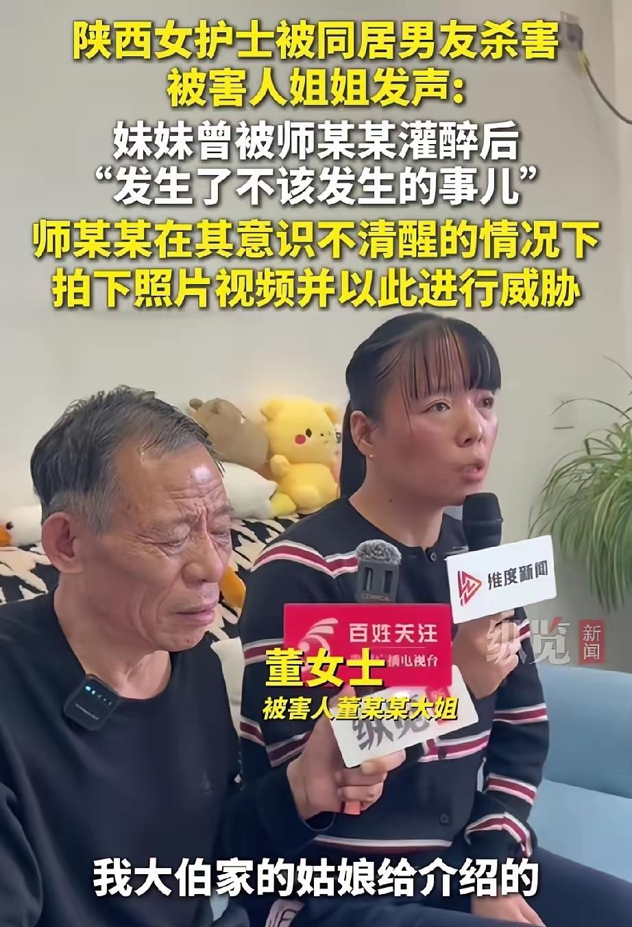 太令人发指了!31岁被害的女护士董文卉,原本单纯善良,却遭到如此残酷对待。凶手师某竟是其堂姐介绍的朋友,师某曾将董文卉灌醉,与之发生关系后进行威胁,二人这才开始同居交往。师某本就已婚已育,却妄图未婚先育、奉子成婚,在董文卉明确反对并自行支付流产费用后,其丑恶嘴脸尽显。 2024年6月20日,在西安市一家医院任职的护士董文卉,在车内被同居男友师某用刀捅颈部致死。 在此之前,师某就长期对董文卉实施家庭暴力,殴打、勒脖、用烟头烫其胸部、进行经济剥削等等,还整日疑神疑鬼。此次他痛下杀手,起因仅是董文卉提出分手,而师某竟早在一个月前就准备好刀具,明显有备而来、早有预谋。 说起董文卉,无论是家人朋友,还是医院同事,都对她赞誉有加。她长相甜美、心地善良,生活勤俭节约又顾家,对待工作更是认真负责。从结识师某,到与其恋爱同居,董文卉就像被引入了一个早已设计好的陷阱。 其一,师某是已婚已育的男士,认识董文卉时,根本没有和妻子解除婚姻关系。一个有家室的人,怎么有资格出来谈恋爱? 其二,董文卉此前从未谈过恋爱。2020年,她27岁时,大伯家的堂姐将她的联系方式给了师某,二人由此结识。但既然是给人介绍对象,媒人至少得了解双方的基本情况,更何况是给自己的亲堂妹介绍。堂姐难道会不清楚师某有妻有子、游手好闲的问题吗? 其三,师某的手段极其恶劣。一次外出吃饭时,他故意用某种不该喝的东西将董文卉灌醉,然后与之发生关系,并拍下视频和照片进行威胁,逼迫董文卉就范。 大概是因为忌惮那些视频照片的威胁,没有任何恋爱经验的董文卉只能选择“乖乖就范”,接受了与师某成为男女朋友并同居的事实。 其四,师某一直游手好闲,连份正经工作都没有,在四年时间里,大多时候都在花董文卉的工资,家属称累计有三四十万之多。两人曾经怀上孩子,师某想借此奉子成婚,逼迫董文卉的父母同意,可董文卉坚决不愿意,最终自己出钱去医院做了流产手术。 这样一个彻头彻尾的恶人、坏人,董文卉提出分手,实在是忍无可忍后的正常反应。她在日记里写下了许多心里话,后来被父亲发现阅读后,才知晓女儿遭受了怎样的摧残,过着怎样暗无天日的日子。 不仅如此,师某在捅伤了女友之后,故意什么都不做,等女友血流尽,一个多小时后才报警,过程中没有采取任何急救措施,这分明就是想要置董文卉于死地。 但师某却坚称自己是一时冲动、激情杀人,并且在被关押的500多天里毫无悔意,对被害人家属既没有任何赔偿,也没有一句道歉,他的弟弟甚至还对董家人出言谩骂、进行威胁。