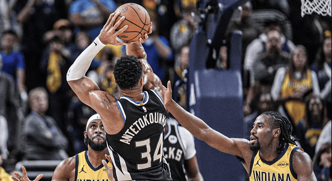 第四节雄鹿最后一攻,阿德托昆博面对防守中投命中,绝杀步行者。