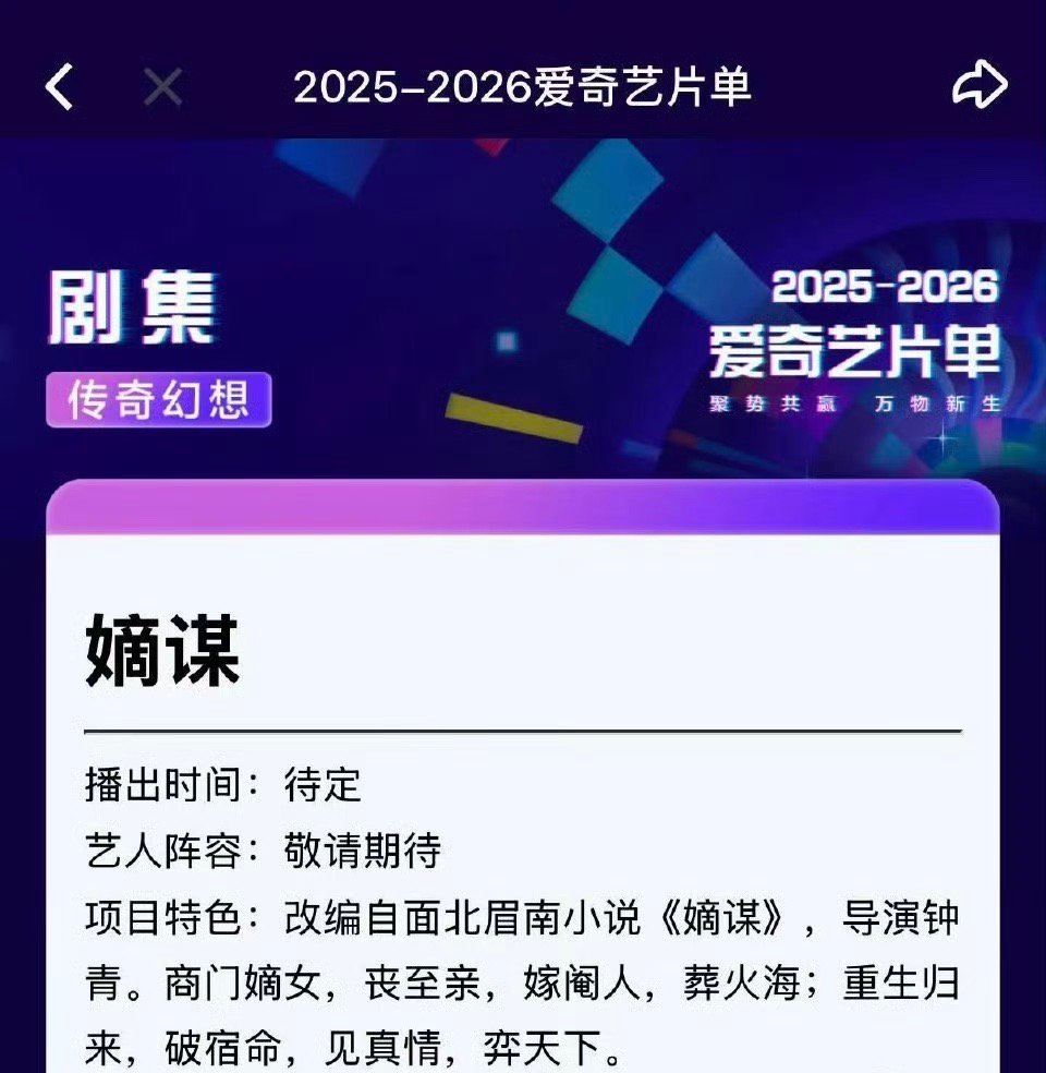 古装宅斗大IP《嫡谋》官宣组讯,12月横店开机!
