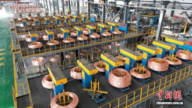 3月31日,甘肃白银年产20万吨高导新材料项目,高纯无氧铜杆正在盘绕成型。(资料图)戴文昌摄