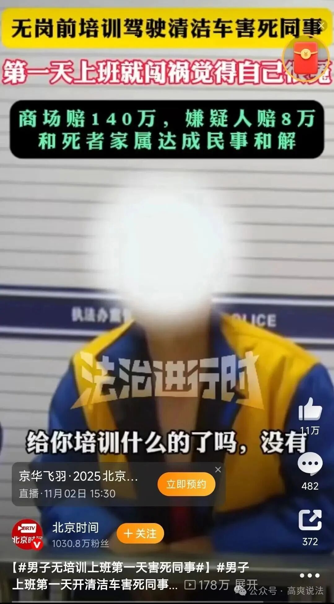 近日,“男子上班第一天开清洁车害死同事”一事广受关注。北京某商场一新入职保洁员张某在无岗前培训、无特种车辆驾驶资质的情况下,开清洁车时误操作将一名同事撞入电梯井致其当场死亡。