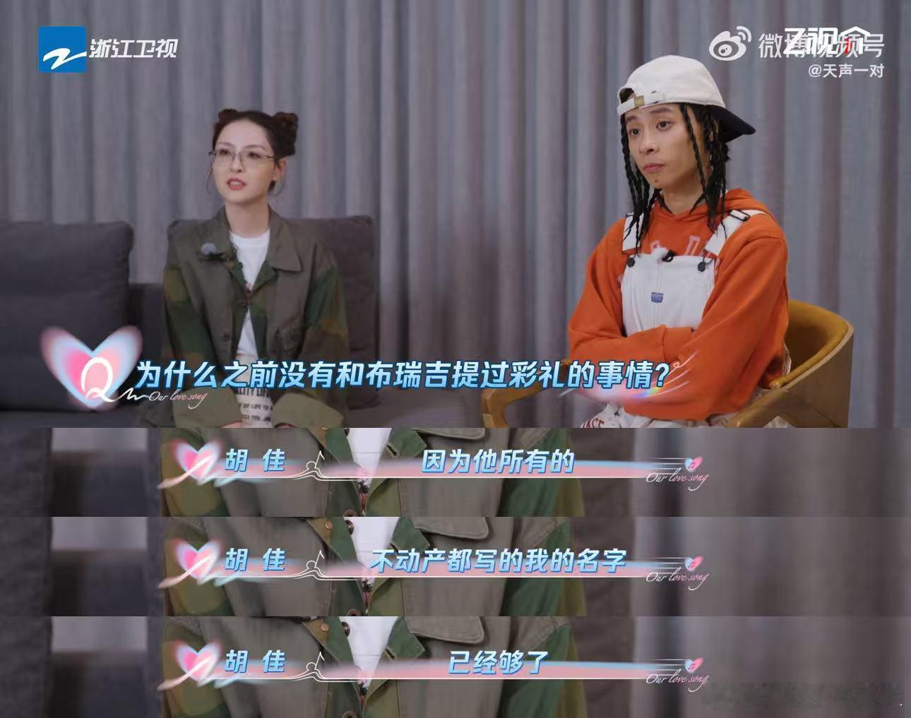 布瑞吉所有不动产都写的胡佳名字 布瑞吉把不动产登记成胡佳之名,这是他爱意的具象化表达,在日常的点滴陪伴中,这份诚意愈发显得珍贵而动人。