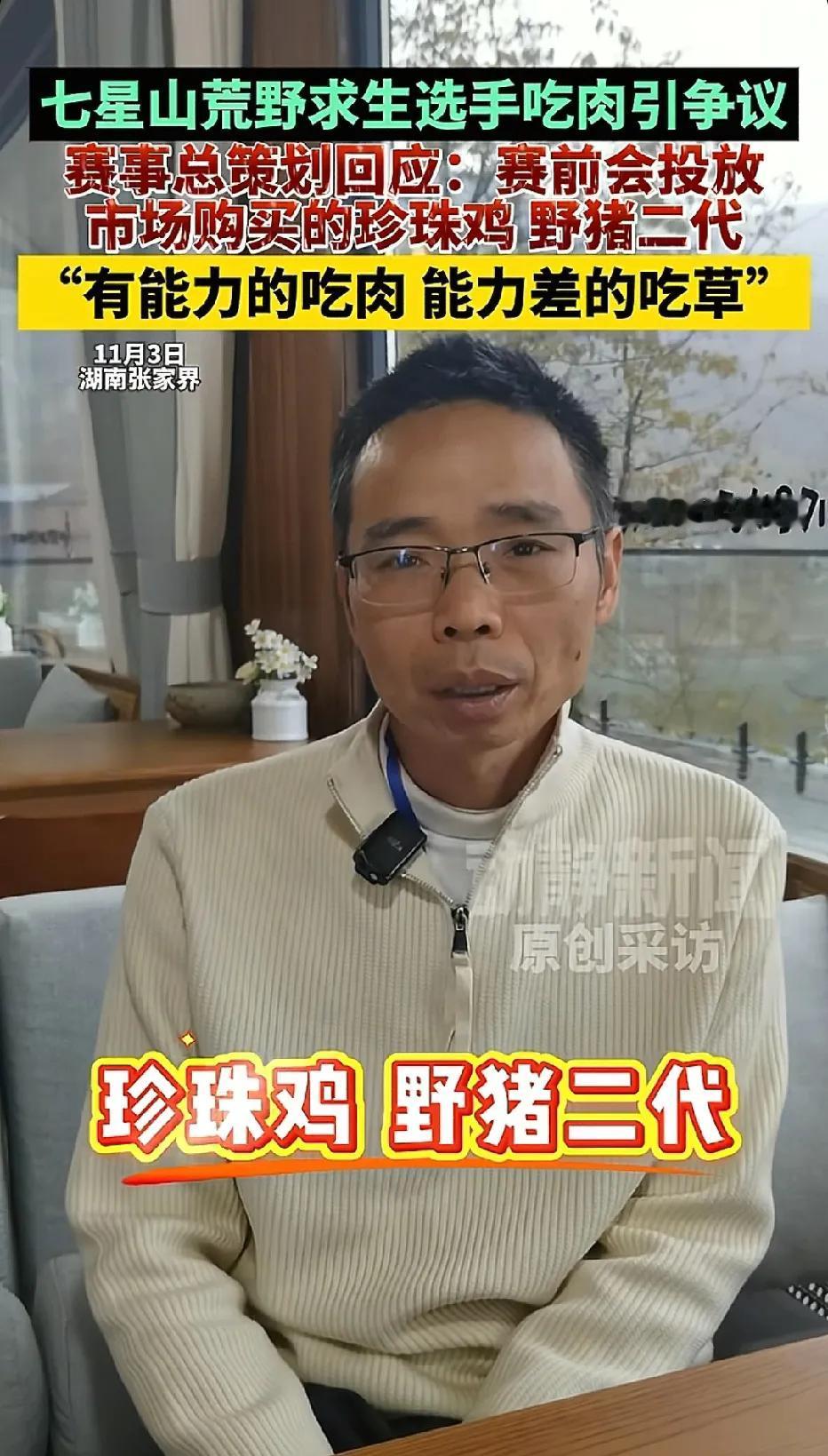 最近这个荒野求生的节目比较火啊?前段时间就刷到过,看了几期视频,现在又搞第二季?又开始了?你有看吗? 比较有争议的是这次有看到参赛选手吃肉,回应是比赛前会投放一些去市场买的珍珠鸡,还有野猪2代。那这样子还算野外求生吗? 我看到有一位网友说:国外那叫荒野求生,这玩意叫抗饿测验。你同意这位网友的说法吗?大家怎么看?
