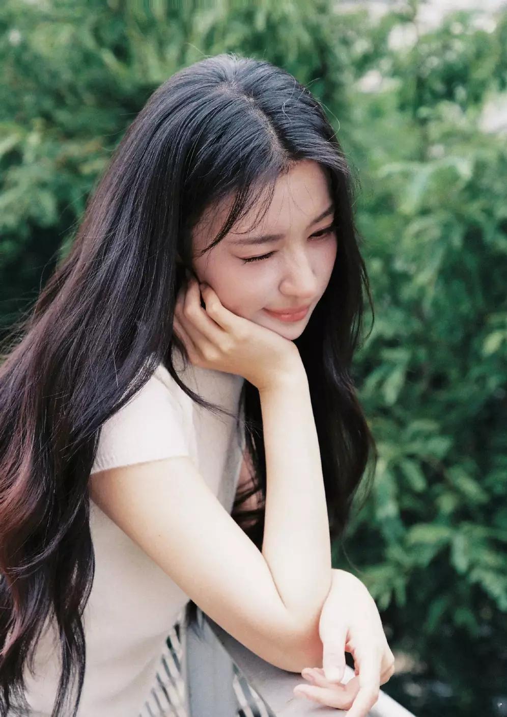 阳光下的甜美笑容,绿意盎然的户外时光。