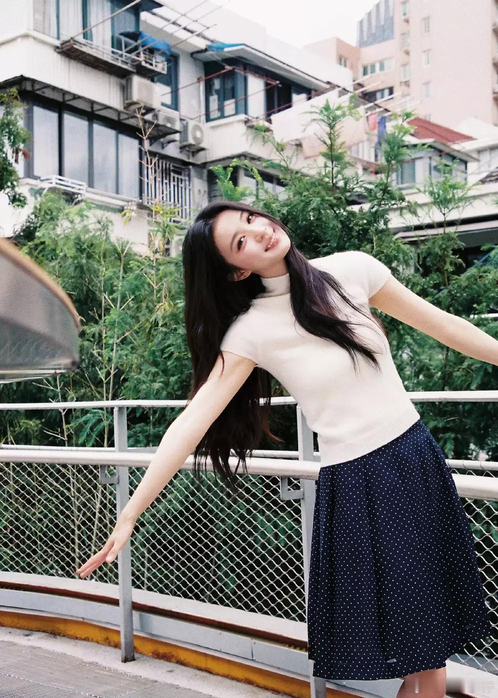 分享娱乐[超话]分享娱乐 王楚然穿着白T恤搭配及膝裙清新靓丽,面露甜美笑容,元气满满。