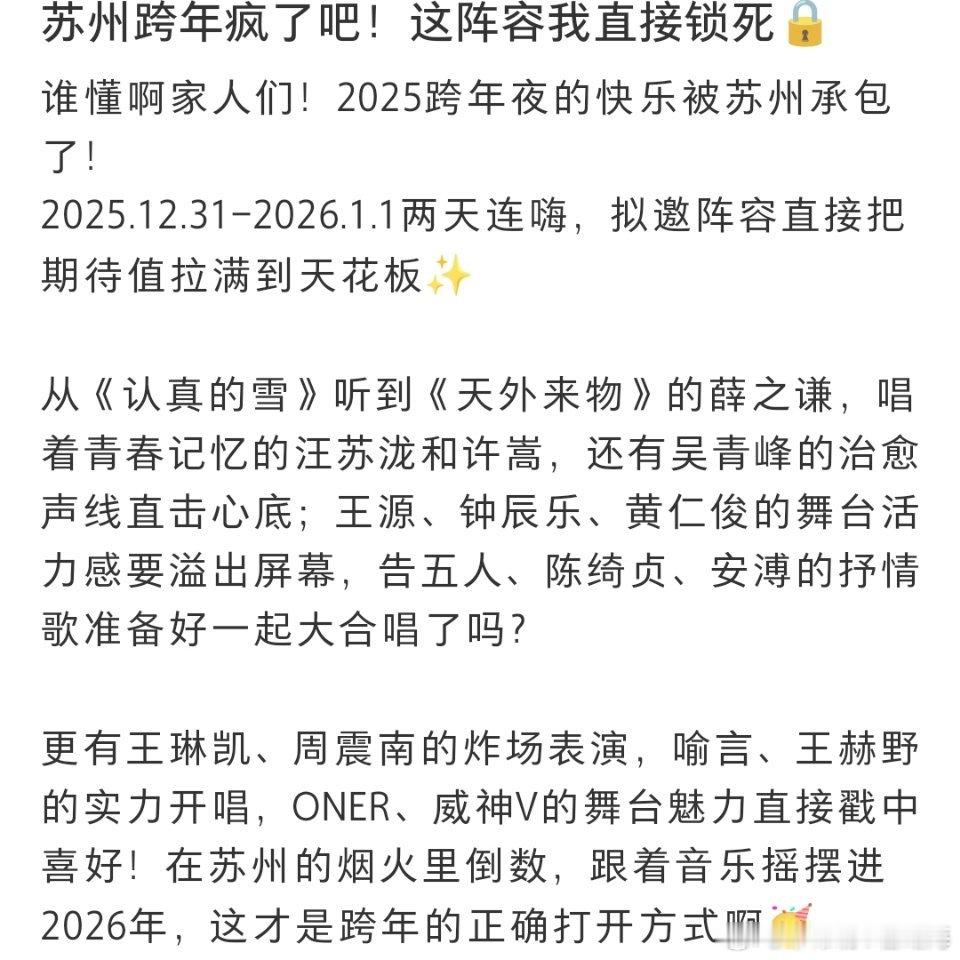 苏州跨年音乐节拟邀嘉宾阵容↓
