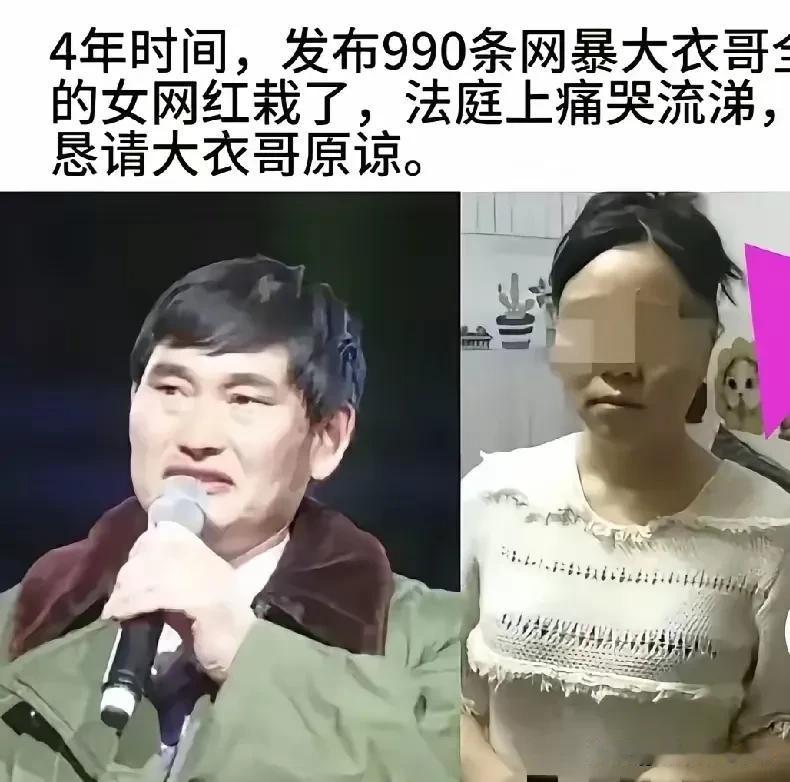女网红哭得稀里哗啦,当庭求饶。大衣哥没有心软,终于送她进去踩缝纫机了,判了6+4个月,这就对了!该女子四年时间在网上发布了990条侮辱诽谤大衣哥全家的言论,当时有多嚣张,现在就有多落魄。 这名女网红姓王,之前在小平台做美妆博主,粉丝量一直上不去,眼看房租都快交不起,偶然刷到大衣哥的视频,发现评论区里吵得厉害,她心里动了歪心思。 最开始她还不敢太出格,就发些“大衣哥商演耍大牌”的猜测,评论区有人骂也有人看新鲜,她看着涨起来的几十个个粉丝,眼睛亮了——原来蹭大衣哥的热度这么容易。 后来她胆子越来越大,从猜测变成捏造。2020年夏天,她发了条长文,说大衣哥偷税漏税几百万,还附了张P的“税务稽查单”,单子上的公章都是歪的,可还是有人信了,转发量一夜过千。 她尝到甜头,又开始编家事,说大衣哥女儿“私生活不检点”,还把别人的照片换了脸发上去;说大衣哥儿子“打架进派出所”,连“拘留天数”都编得有模有样。 四年里,她几乎每天都发,有时候一天能更三四条,每条都带着脏字,评论区有人提醒她“别造谣”,她还回怼“我说的是实话,有本事让他来告我”。 大衣哥一开始没打算较真。他从农村出来,知道老百姓过日子不容易,觉得对方可能就是想赚点流量,团队劝他发个声明澄清,他都点头应着,可转头又说“算了,跟她计较,别人该说我欺负人了”。 直到2022年冬天,他女儿哭着跑回家,说学校里同学拿网上的谣言笑她,说她“爸爸是骗子”“姐姐不正经”,女儿躲在房间里哭了整整一天,连饭都没吃。他摸着女儿发红的眼睛,看着儿子出门时被邻居指指点点的样子,第一次觉得不能再忍了——他能受委屈,可不能让孩子们跟着遭罪。 他找律师收集证据的时候,才发现事情比想象中严重。律师把那990条言论一条一条整理出来,打印了厚厚的几本书,其中600多条都涉及捏造事实,还有200多条带着侮辱性词汇。 有一条甚至说“大衣哥家人早晚遭报应”,传播范围最广,光是转发就过了万,连他老家的村民都来问“是不是真的”。律师跟他说“这已经不是简单的网络吵架了,构成诽谤罪了”,他这才下定决心,一定要起诉。 开庭那天,王姓女网红跟之前判若两人。之前直播时她总涂着浓妆,对着镜头喊“大衣哥就是装淳朴”,那天她没化妆,头发乱蓬蓬的,一进法庭就慌了。 法官念到她造谣偷税漏税的那条言论时,她突然就哭了,瘫在被告席上喊“我错了,我就是想赚点零花钱,我再也不敢了”,还转头对着大衣哥的律师鞠躬,说“求你们让大衣哥撤诉,我愿意赔偿,多少钱都行”。 可律师拿出她之前的直播录像,里面她笑着说“就算他告我,我也不怕”,对比之下,她的道歉显得格外苍白。 法官最后宣判的时候,明确说她的行为已经扰乱了网络秩序,给大衣哥全家造成了严重的精神损害,判处有期徒刑6个月,再加4个月拘役,总共10个月。 听到判决结果,她腿一软,还是法警扶着才站稳的——她之前总觉得“网上说话不用负责”,直到这一刻才明白,法律从来不会纵容恶意。 其实大衣哥不是狠心,是他知道,这次退了,下次还会有人为了流量欺负到家人头上。现在总有人觉得,网络是法外之地,只要能蹭到热度,造点谣、骂两句没什么大不了。 可这次判决就是个警告:你敲键盘时有多嚣张,法律找上门时就有多狼狈。流量再重要,也不能凌驾于法律之上;想赚钱没错,但不能踩着别人的尊严和底线。 网络空间需要干净的环境,不是谁嗓门大、谁谣言多,谁就能赢。尊重是相互的,不管是普通人还是公众人物,都不该被恶意伤害。这次判决,不仅是给大衣哥全家一个交代,更是给所有想靠造谣博眼球的人提了个醒——别心存侥幸,违法的事,干不得。 各位读者你们怎么看?欢迎在评论区讨论。