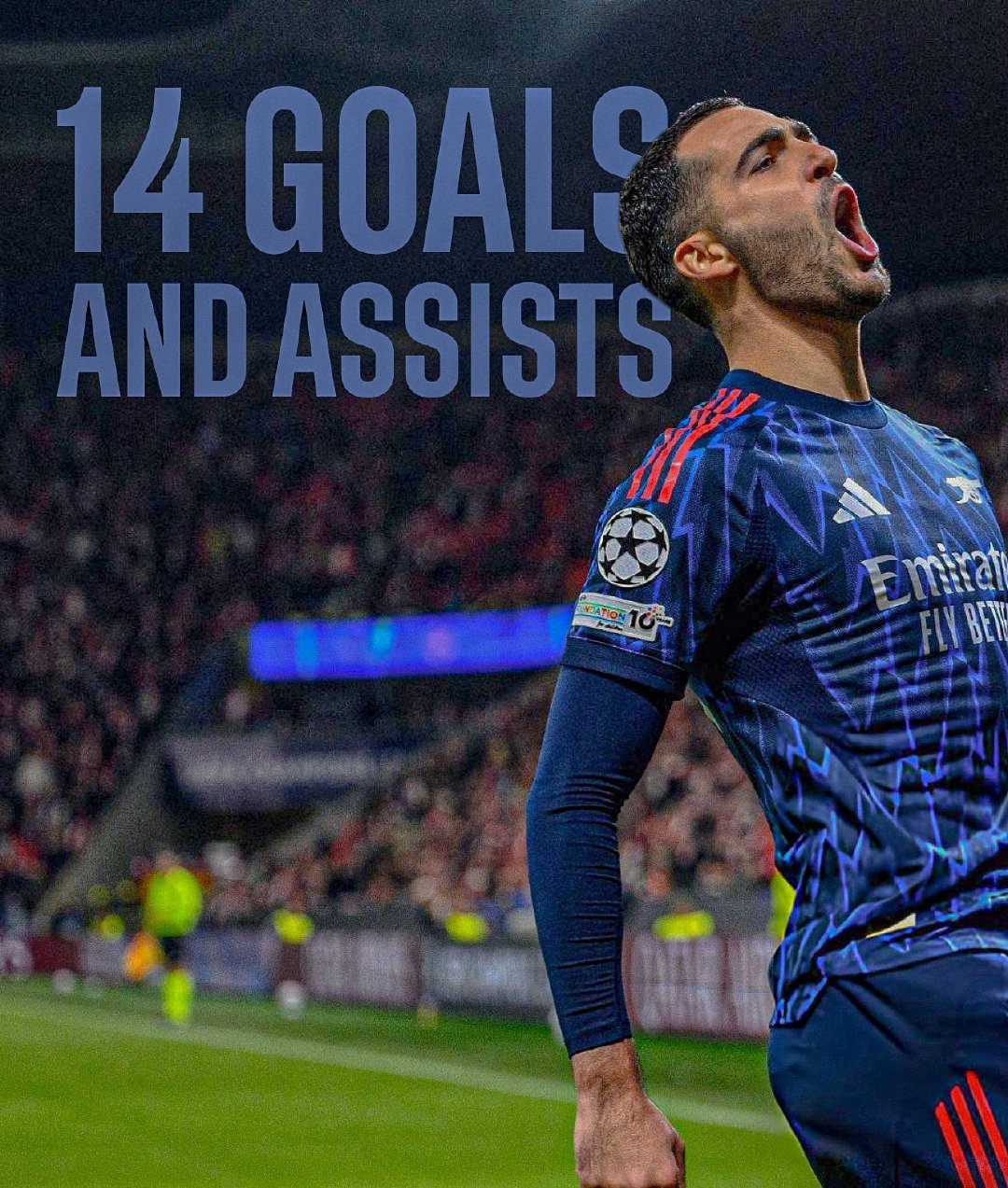 自上赛季对阵莱斯特城的比赛以来,梅里诺首次以临时前锋的身份出场,至今已为阿森纳贡献了14个进球和助攻。