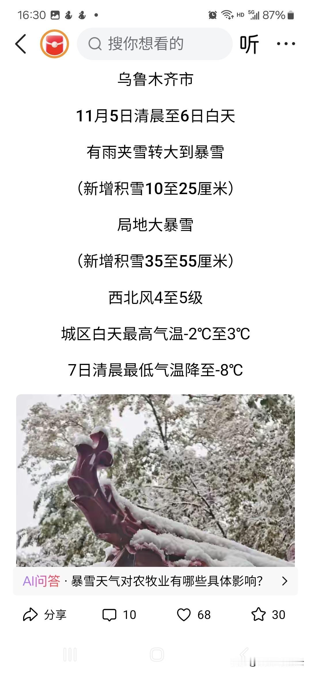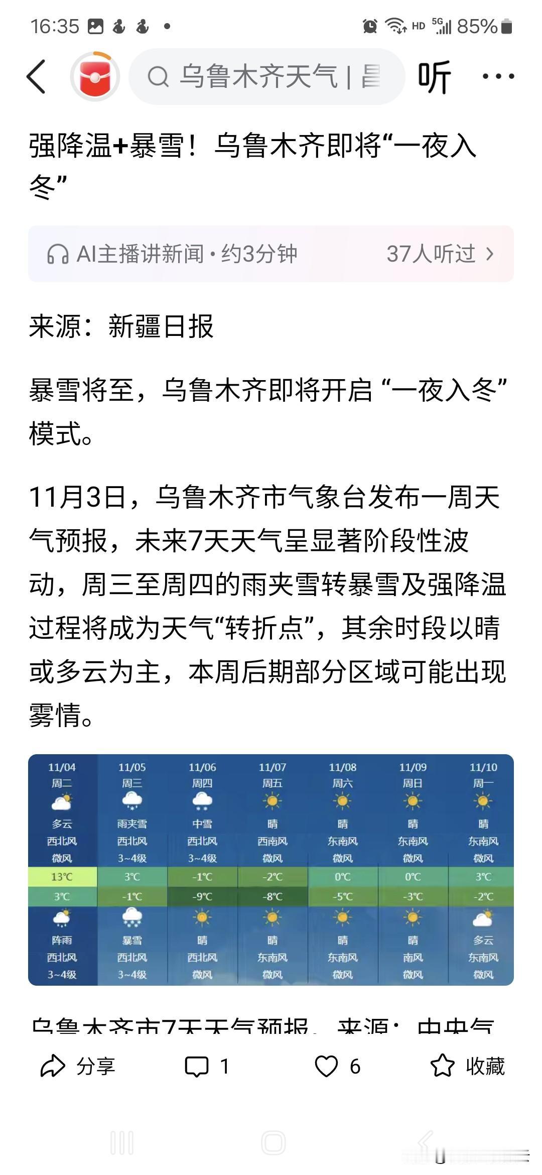 当气象台学会了用夸张的修辞格。 从前天开始,自治区和乌市气象台就预报说5日至6日有大到暴雪,受此影响,幼儿园和部分中小学都暂停了。可是,早上下了场毛毛雨,现在也停了。如果普通人这样说,肯定被缉拿归案,进去踩好几年缝纫机,因为互联网不是法外之地。可是,他们就可以正大光明地胡说一气。几年前俺们山东气象台也搞过一次大的:主持人说,“随着寒流来袭,我省迎来大幅降温,鲁北和鲁中山区最低气温将下降到零下6至12度”,可是字母显示的是“最低气温下降到-612度”。我想原来应该是“—6——12度”,可能某位有权柄的人一看这么多小横杠,看着碍眼,结果删多了。网友截图后迅速风靡于网路,引发舆情,因为温度最低叫“绝对零度”,也才零下273.15度,原子都停止运动。零下612度是咋样呢?事后气象台称“字幕是临时工干的,已经解聘,以儆效尤。”