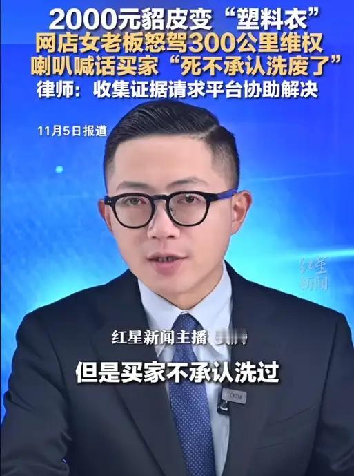 “白嫖行为太气人!”山东一20多岁女子网购貂皮大衣,水洗后恶意退货,老板怒驱车300公里喇叭喊话维权,网友直呼:这脸皮也太厚了! 事件迅速引发关注。网店老板王女士称,买家在10月22日花1888元购入特价貂皮大衣,24日签收。 谁料,女子30日突然申请退货,平台同意退款。老板收到退货时,发现大衣有明显水洗痕迹,整件衣物变硬报废。 老板拒绝退货,但女子死不承认,还继续提交申请。平台最终将钱款退给买家,王女士多次协商无果。 一气之下,王女士驾车300公里赶到买家小区。她先求助警方,对方以带孩子为由拒不下楼。 王女士干脆拿起喇叭在小区喊话,公开女子手机号,要求出面沟通。视频中,她边走边吆喝,指责女子洗坏衣服还抵赖。 目前,王女士表示将不计成本追究到底,准备提起诉讼。许多网友支持她维权,认为该行为必须整治。 对于这件事情,大家有什么看法? 今天的分享到这里就结束了,大家对此事有何看法,欢迎在评论区留言和讨论,感兴趣的可以点击头像加关注,我将每日更新优质内容,我们下期见。