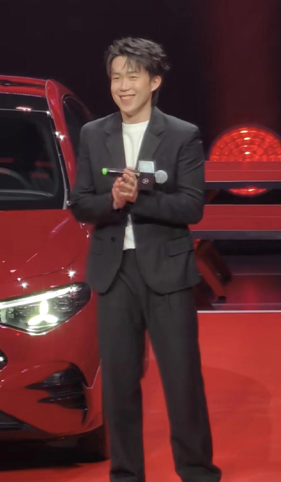 大头这个笑也太爽朗了吧, 今晚参加活动, 一点也不i呀, 感觉很自然, 笑得很开