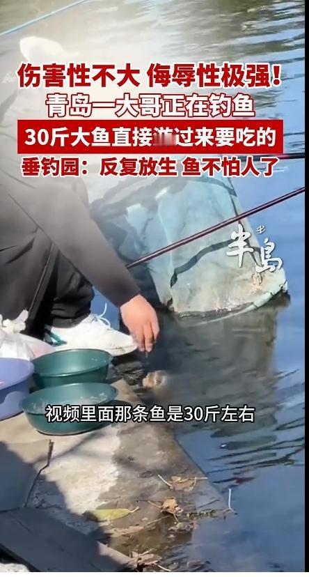 真的是伤害性不大,侮辱性极强!山东青岛一大哥在垂钓园钓鱼,钓着钓着,突然一条30