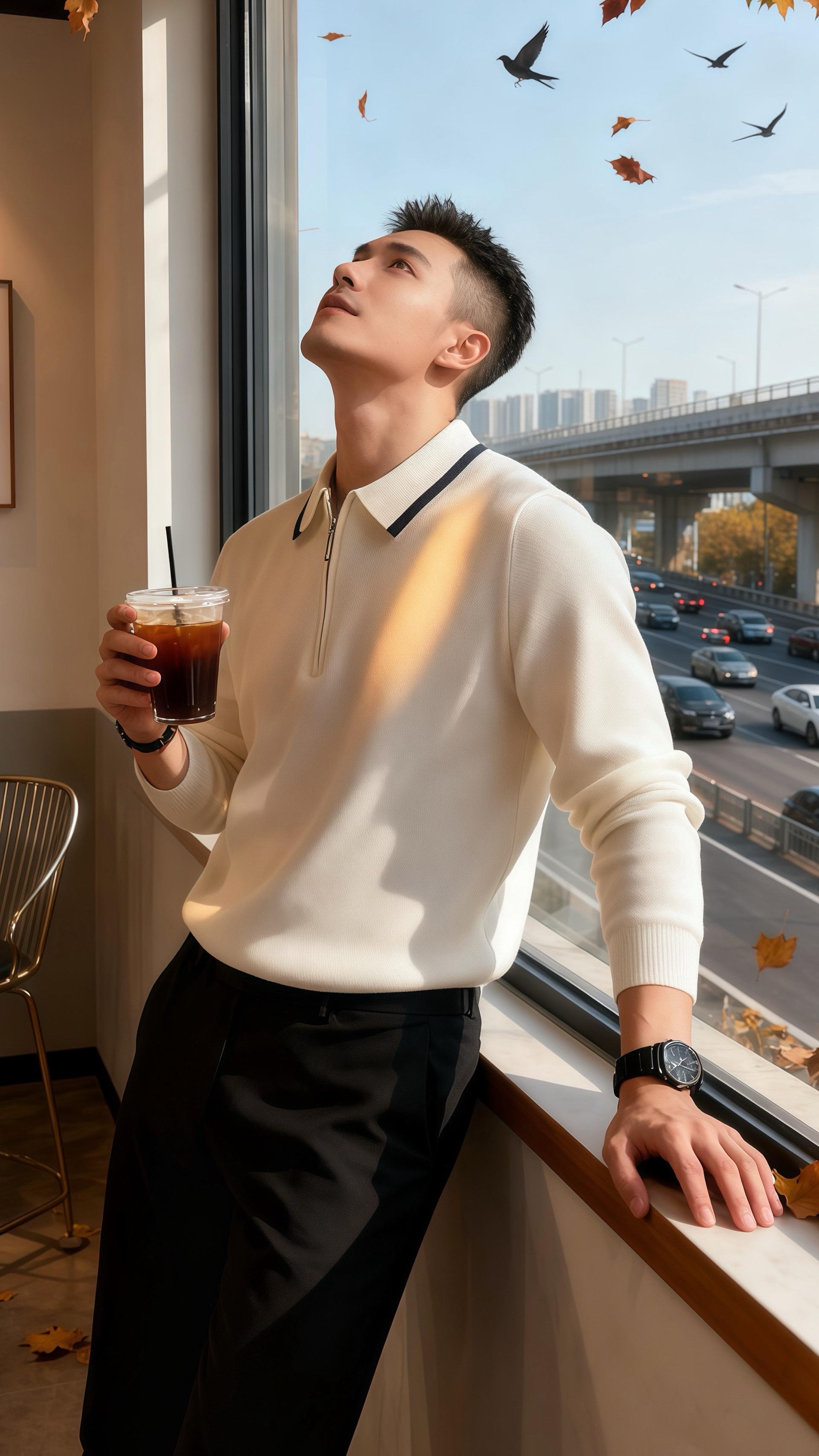 他抬手拨了拨她的头发,那触感像他的穿搭一样,干净又舒服。他们点了两杯热拿铁,在香气里慢慢靠近。许妍忽然明白,喜欢一个人,或许就从喜欢他身上的温度和细节开始。那天的阳光很暖,而他们的故事,在那件米白上衣的温柔里,刚刚拉开序幕