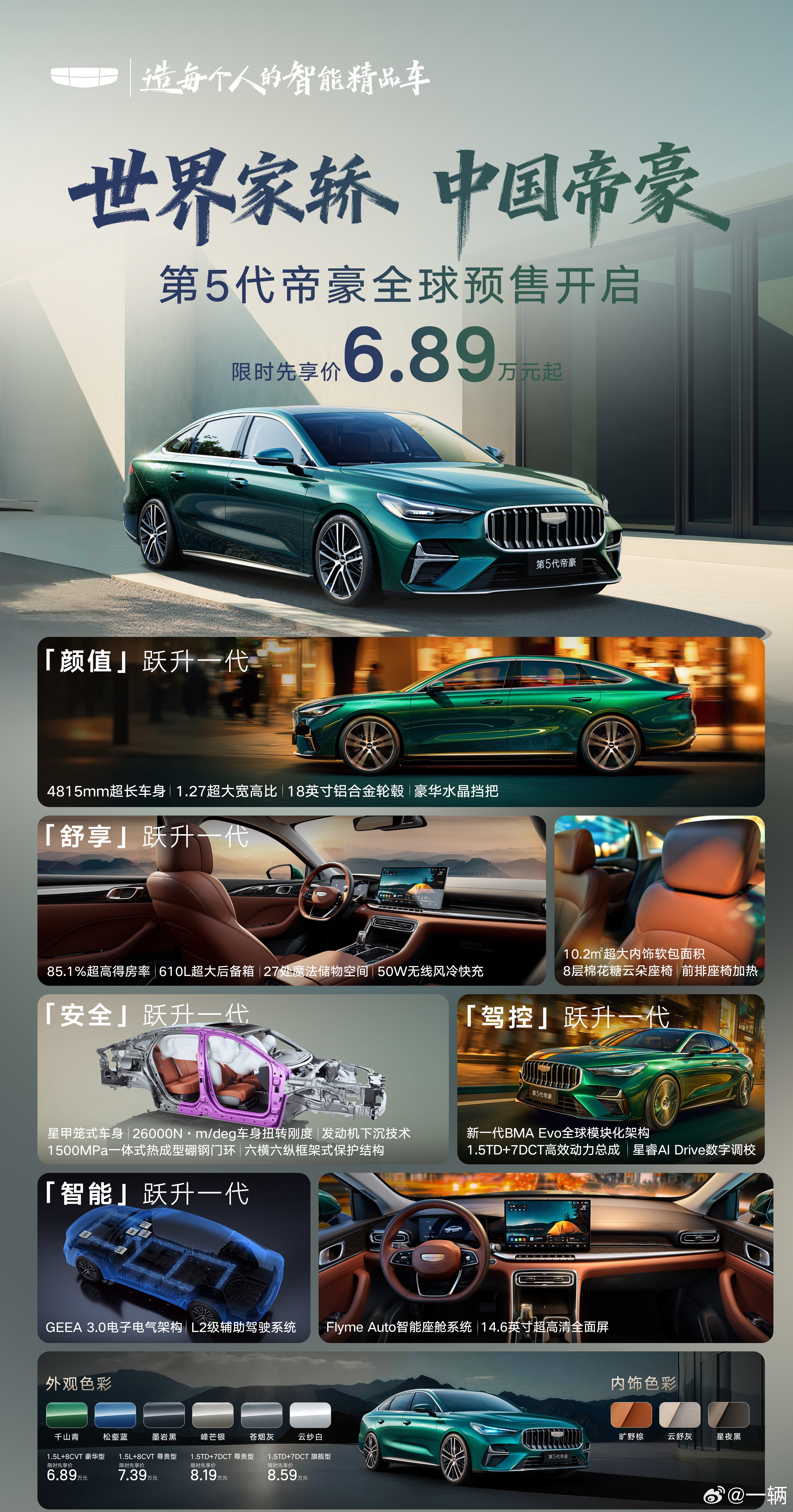 吉利帝豪1.5NA和1.5T两套纯燃油动力
