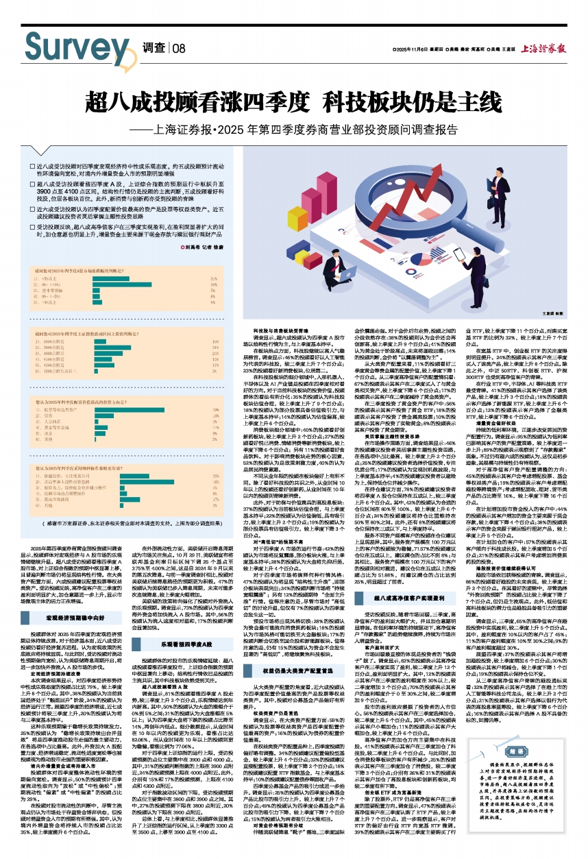 超八成投顾看涨四季度 科技板块仍是主线——上海证券报·2025年第四季度券商营业部投资顾问调查报告