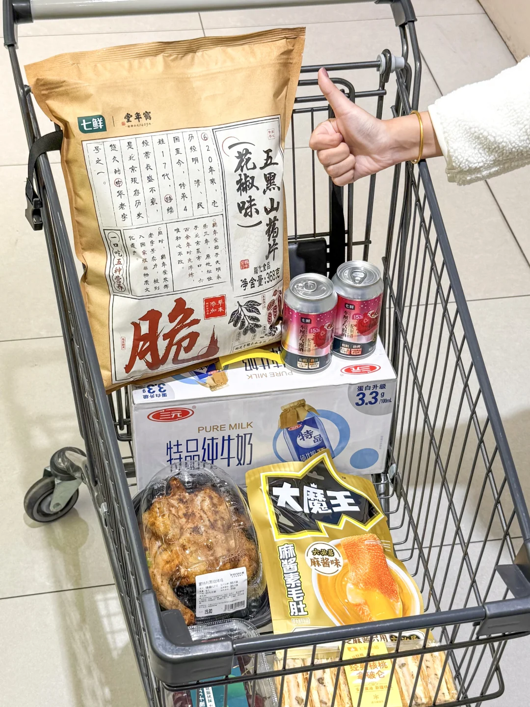 双十一倒计时!冲进七鲜扫货一整天 分享一下个人最近买到的好吃的好喝的! 这份清单真的闭眼入不踩雷💥 熟食区黑椒烤鸡才17.9! 🍗加热后滋滋冒油好香! 外皮焦脆肉质嫩到爆汁 打工族下班顺手带一只,真是美滋滋! 零食区直接封神了喂😍 花椒味五黑山药片脆到上头!9.9一包性价比起飞!! 魔芋素毛肚Q弹到飞起 麻酱味浓得像在涮火锅,解馋还没负担 🍷车厘子气泡酒也太绝了 果香浓郁气泡超细腻~5.9还要啥自行车 冰镇配晚餐直接氛围感拉满! 一大箱三元牛奶24盒才💰27.9 🥛一块多一盒太香了!承包全家早餐没问题 🍮烘焙区也超好买的! 拿破仑蛋糕层层酥脆 核桃香混合黄油,还是动物黄油版! 去太晚都抢不到! 还有智利车厘子🍒空运的就是新鲜! 颗颗爆汁纯甜核小 偶尔奢侈一把就是要犒劳犒劳自己😳 直接塞满购物车! 这次折扣真的太实在了,双十一当天还有99-20的优惠券! 姐妹们快冲!!
