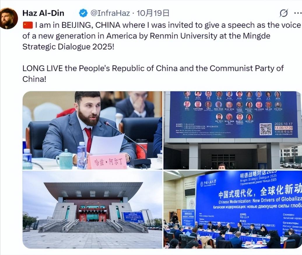 来中国参观后,美共主席震惊了! 正值美国政府创纪录“停摆”之际,美共主席阿尔丁来到中国参观,这场原本为参加中国人民大学“明德战略对话”的学术之行,彻底变成了一次颠覆他固有认知的“认知重构”。 在北京的五天里,阿尔丁脚不沾地连逛带看,手机就没闲着,隔三差五就在社交媒体刷屏分享震撼。 走进中关村的创新展示中心,他盯着融合北斗定位、5G通信的智能设备挪不开眼,转头就想起美国的“老古董”基建,地铁还在用纸质车票,信号时断时续,站台涂鸦满墙,时不时还故障停运。 而中国高铁准点率飙到98%以上,最短4分钟就发一班车,2024年光旅客就送了32亿人次,自动驾驶都成了常态,这对比让他忍不住感慨“差距太真实”。 坐北京地铁时,他对着扫码进站的便捷连连点头,逛华为、小米门店更是开了眼,高性价比的黑科技产品早就走进寻常百姓家,哪像美国市场被巨头垄断,价格贵得离谱。 如果说科技硬实力让他开眼界,民生保障的软实力更让他走心。得知中国移动支付普及率高达86%,全球第一。 从菜市场买菜到医院挂号,甚至路边摊都能“碰一下”付款,连老年人和外籍游客都能轻松用,阿尔丁属实被惊到了。要知道美国还有不少地方离不开现金和信用卡,移动支付覆盖率连40%都不到。 更让他触动的是医保保障:中国95%以上的人都有医保,13亿多人被纳入保障体系,2024年医保基金花了近3万亿元,异地就医、家庭共济政策让看病少花钱,甚至刷脸就能就医。 这让他想起美国的窘境:2400万参保人要面对保费上涨,还有数千万人没医保不敢看病。他在推文中直言“中美都从贸易受益,但美国利益只流向少数人,中国却投给了人民”,这句话戳中80万网友,瞬间刷屏。 阿尔丁还走进党史展览馆、北大二院旧址,从中国百年变迁里看到了“为人民谋幸福”的实在劲儿。站在天安门前拍照时,他忍不住吐槽西方媒体太能误导,“亲眼看到的中国,跟听来的完全是两个样”。 拿到美国共产党前主席1958年致毛泽东的信件复本后,他更是直接在社交平台喊出“共产主义是好的”,这条推文火速冲上国际趋势榜, millions of people浏览。 看着中国让亿万民众摆脱贫困,发展成果人人共享,再想想美国日益加剧的贫富差距,顶层0.1%的家庭占了13.8%的财富,底层50%的家庭却只分到2.5%,他彻底明白中国的活力和自信来自哪里。 这场中国行,让阿尔丁打破了所有刻板印象。他看到的不是西方口中的“威胁”,而是一个把人民放在首位、办事高效的现代化典范。 一边是美国政府停摆的闹剧,一边是中国在科技、民生、治理赛道上稳步领跑,这样的强烈反差,难怪会让这位美共主席完成彻底的“认知重构”。