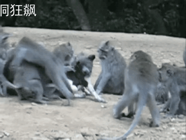一只小奶狗不知怎的,误打误撞走进了猴群的领地。猴群瞬间就被这个小家伙吸引了,纷纷围了过来,好奇地打量着它。 这些猴子们对小奶狗充满了兴趣,它们伸出毛茸茸的手,轻轻地抚摸着小奶狗的毛发,有的还试图抱抱它,就像在对待一个新奇的玩具。小奶狗一开始还有些紧张,身体绷得紧紧的,眼神中透露出一丝不安。但猴子们似乎并没有恶意,只是单纯地想要和它亲近。 然而,小奶狗显然不太适应这种热情的“款待”,被这么多猴子围着“rua”,它显得有些不耐烦,不停地扭动着身体,想要挣脱猴子们的“魔爪”。终于,小奶狗瞅准了一个机会,趁着猴子们稍微放松警惕的时候,迅速从它们中间钻了出来,撒开腿就跑,那速度仿佛在说:“我再也不想经历这样的场面了!”