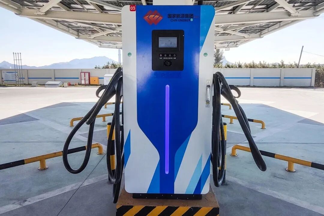 充电区域设有6台180千瓦双枪充电桩,为电动汽车提供便捷充电服务,充电罩棚顶部安装有53.76千瓦光伏,可满足站内日常用电负荷,实现绿电自发自用。