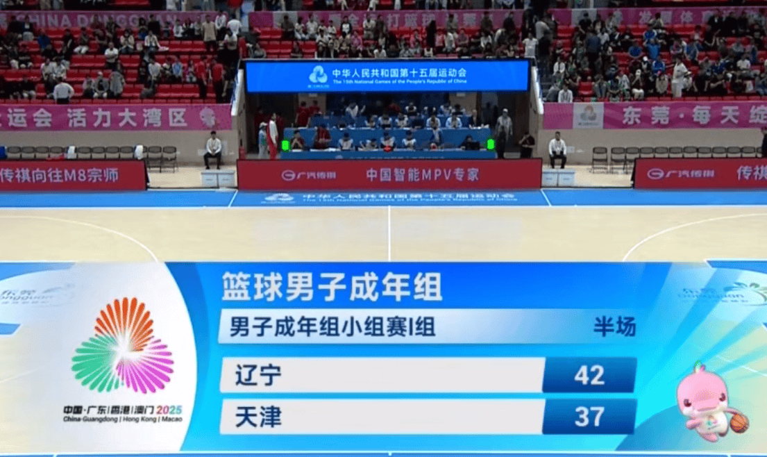 半场比赛结束,辽宁全运42-37领先天津全运。