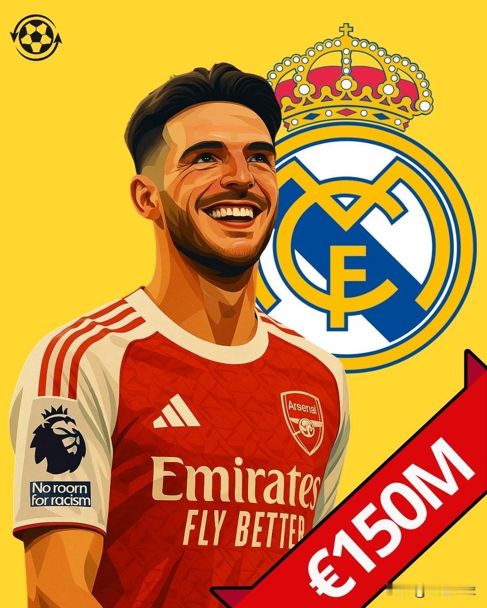 🚨 阿森纳为德克兰·赖斯标价1.5亿欧元(约合1.32亿英镑),这名深受皇马青