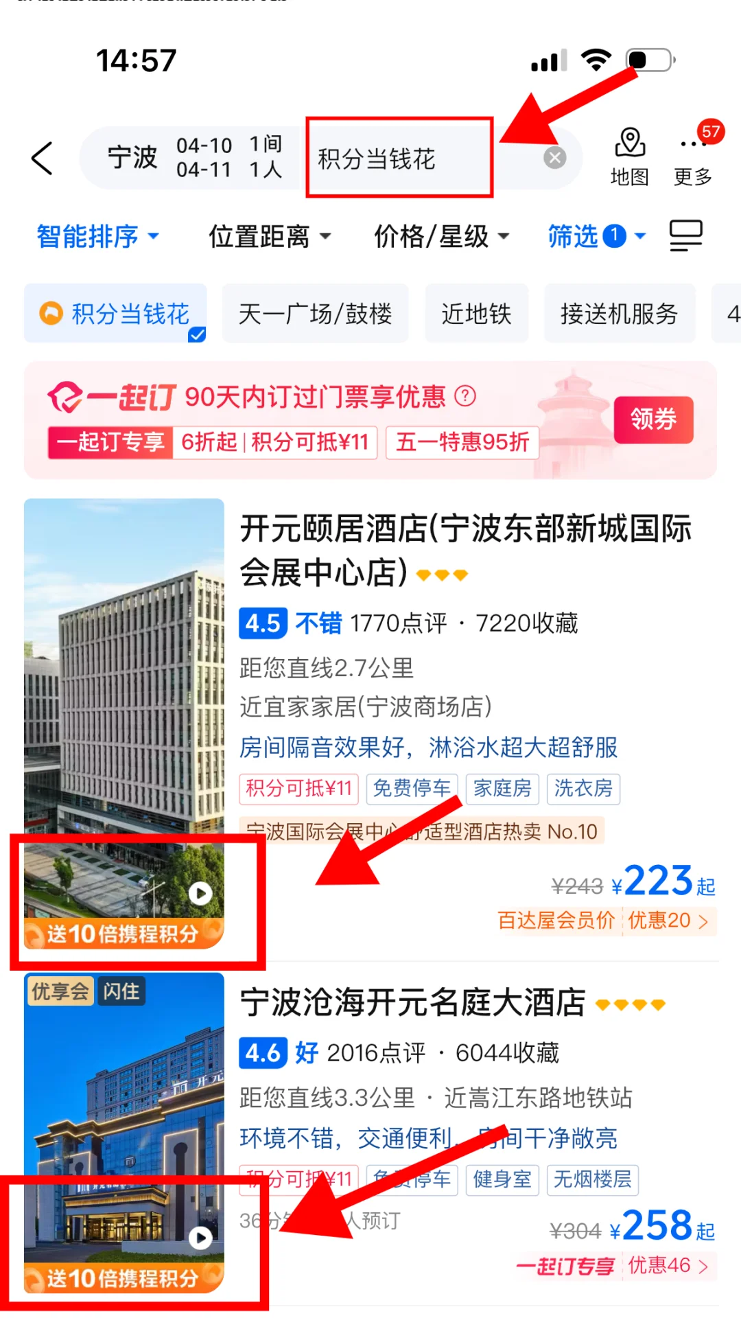 ✅他们的“积分当钱花”是实打实可以抵扣消费💰,100积分抵1元,直接筛选出可积分抵扣的酒店,有些酒店甚至能全额积分抵扣👍