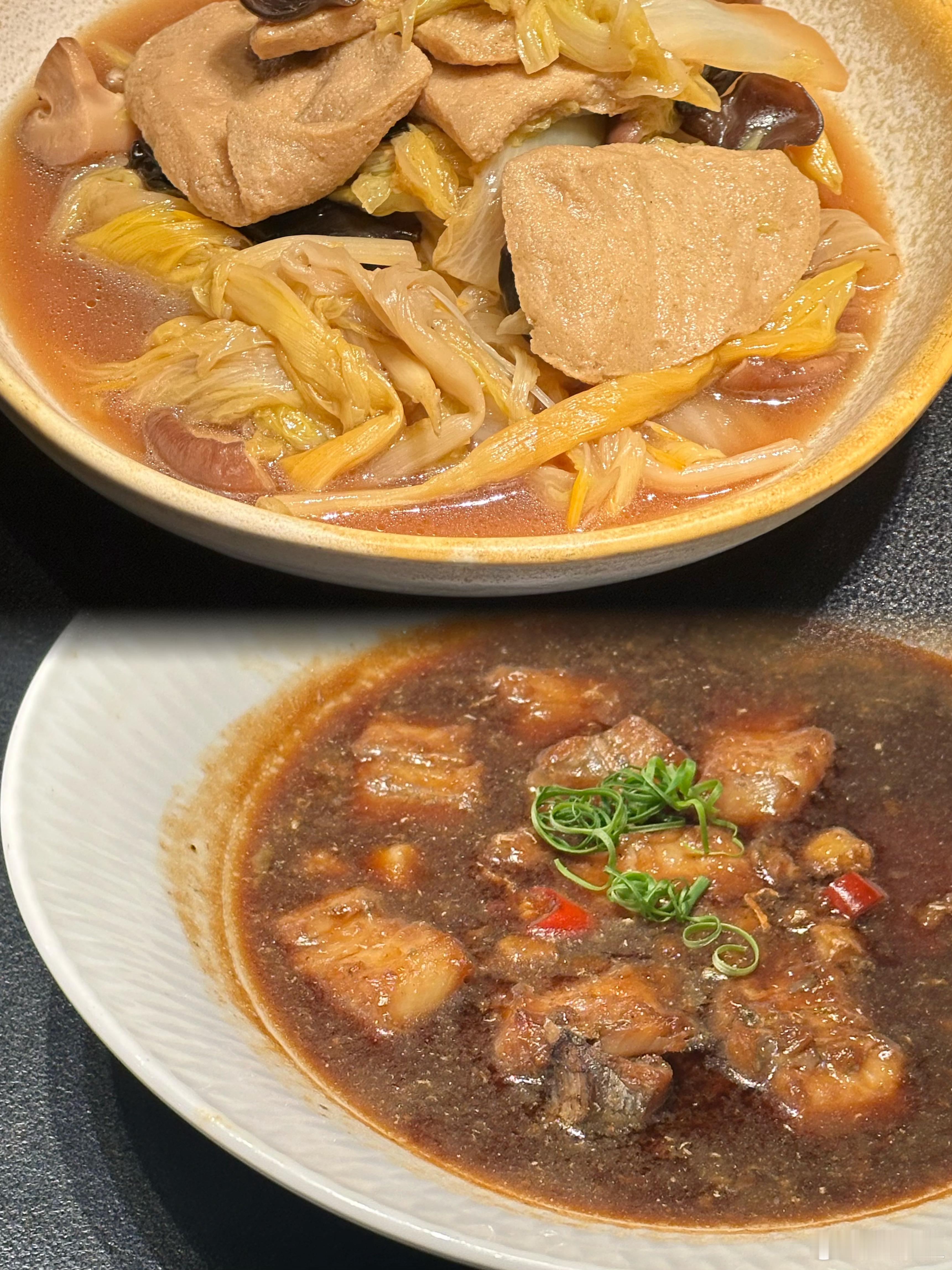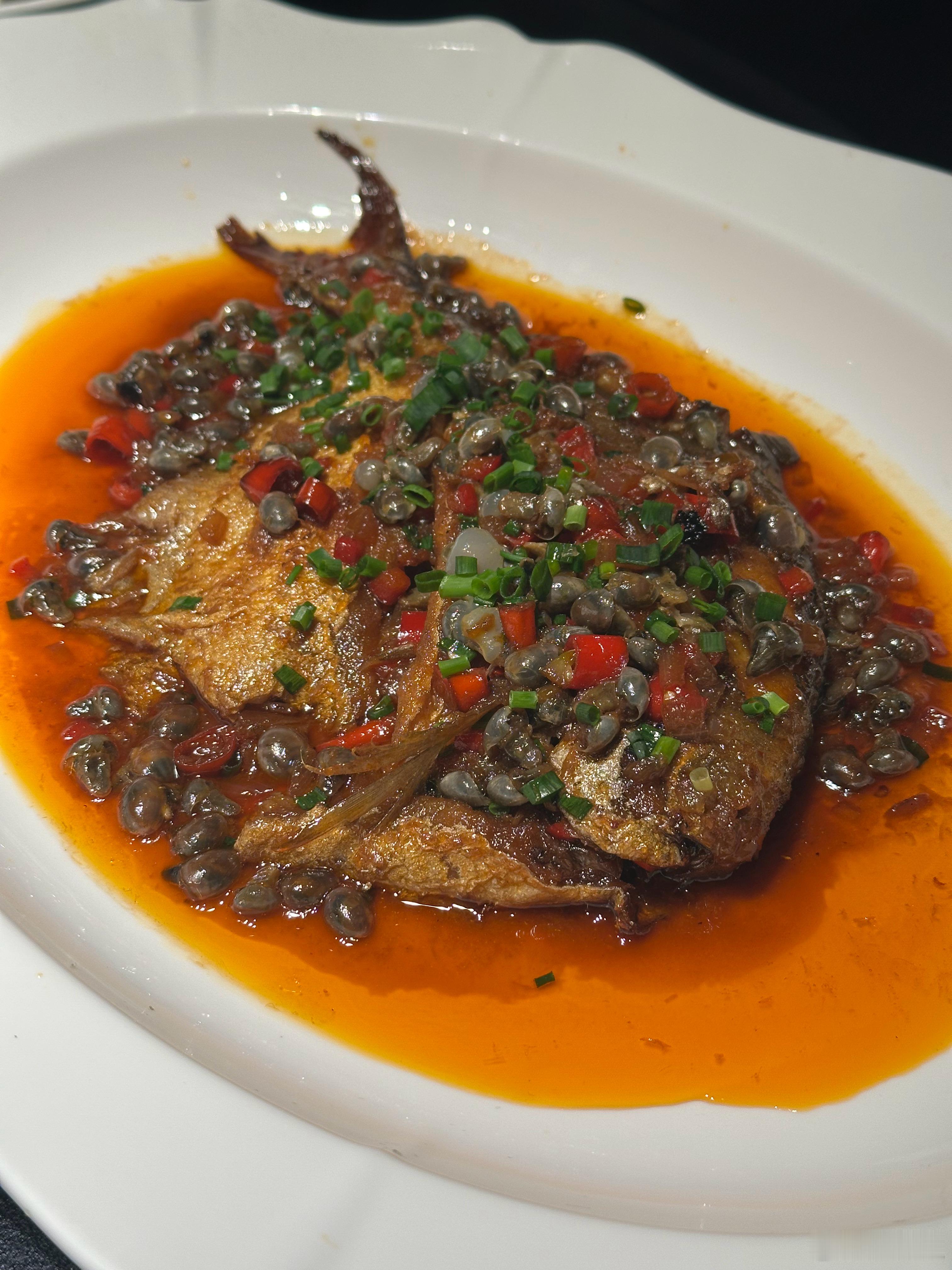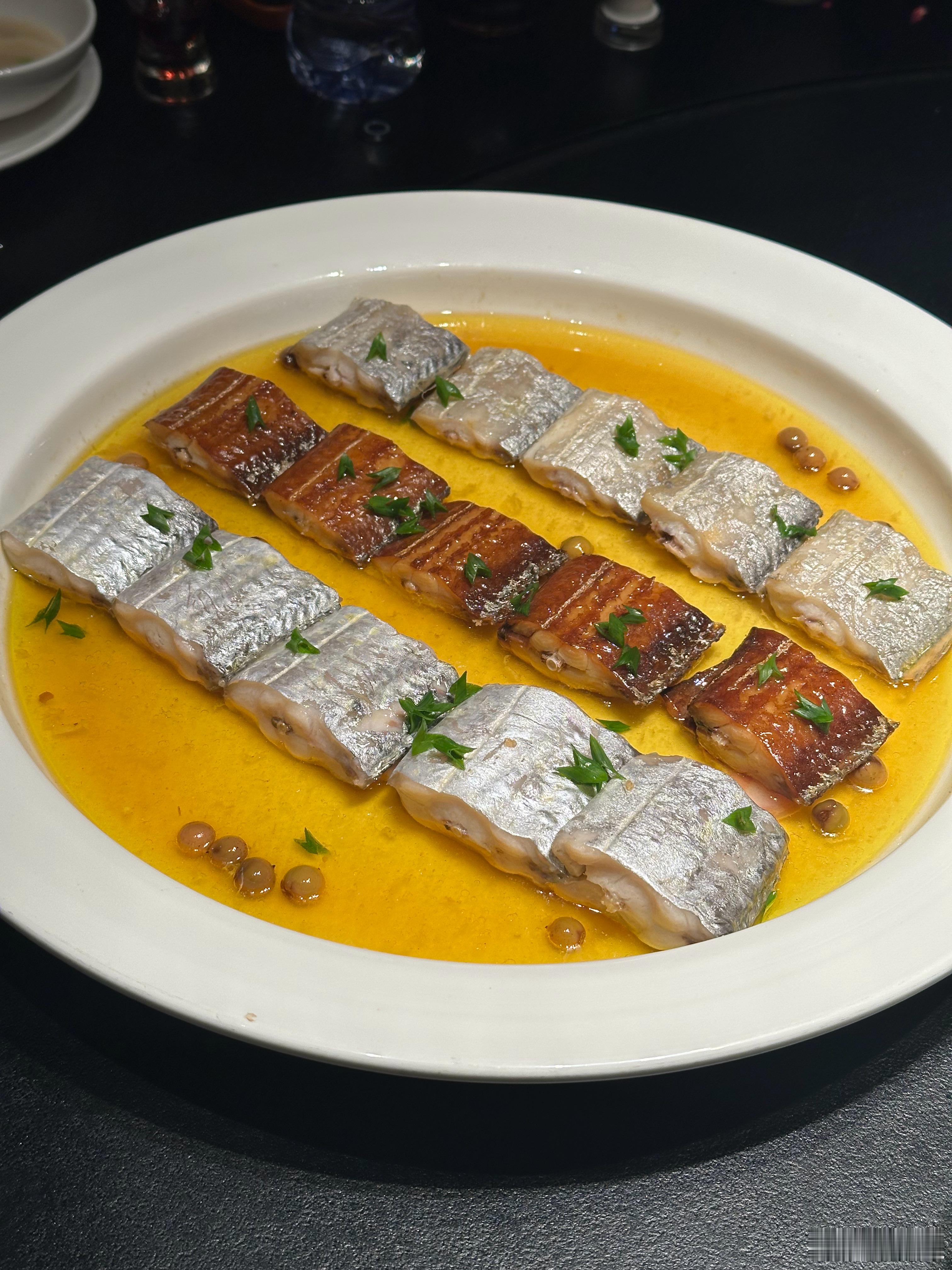 小泥螺干烧鲳鱼,做得非常到位,食材本身新鲜度够好,又增添了泥螺的鲜味升级;鲜带鱼、暴盐带鱼、酱带鱼的三色带鱼混蒸,相当于带鱼腌笃鲜了,再加几片咸五花肉肉打底,鲜美拔高一个等级;油淋鸟贝,味道割得相当准,连打底的豆芽都好吃。