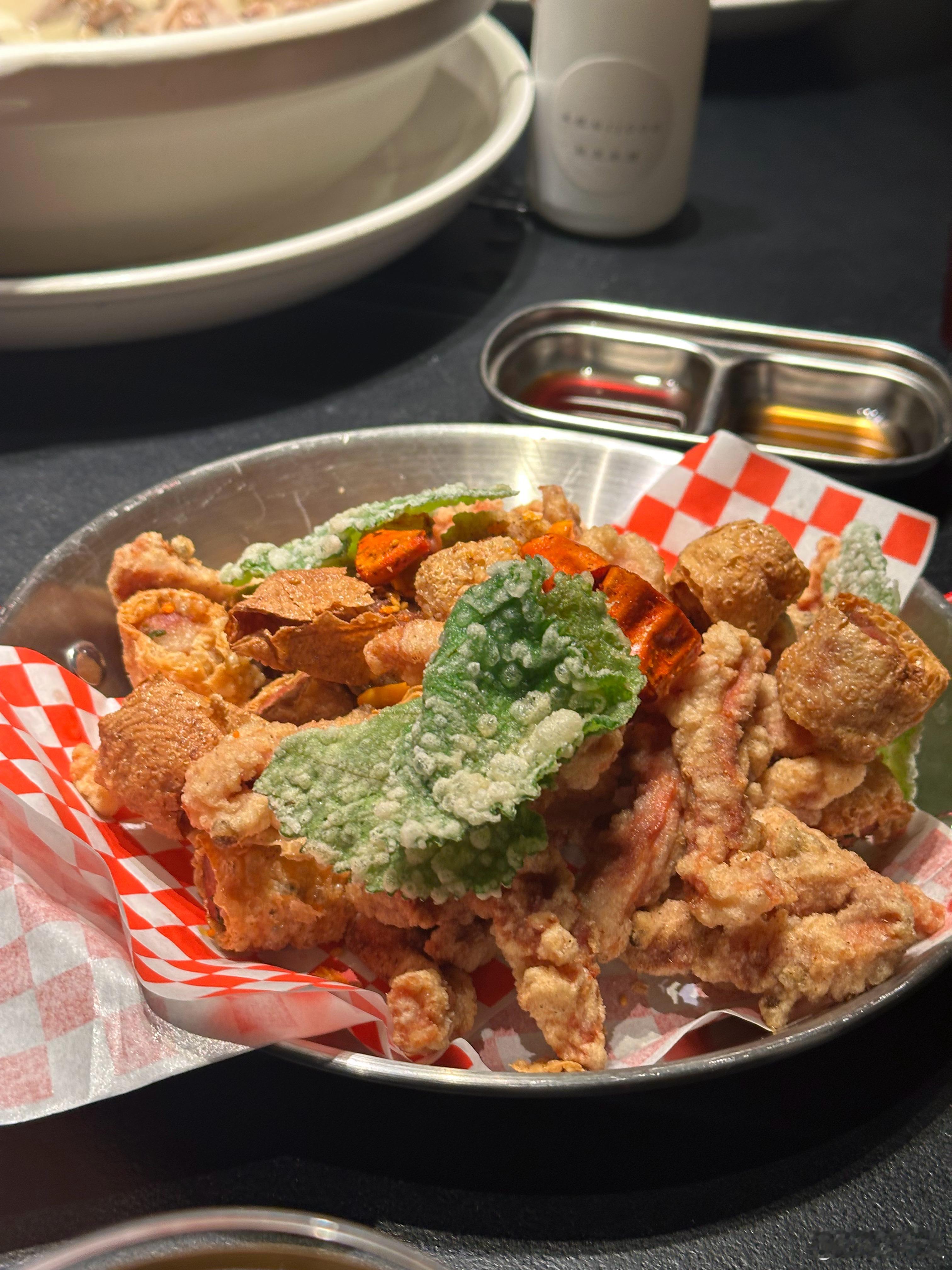 肝腰合炒,难度很高的菜,如今少有餐厅肯做,水准相当在线,建议必点;炸排条响铃,蘸醋蘸辣酱油,又是老上海人的心心念念。