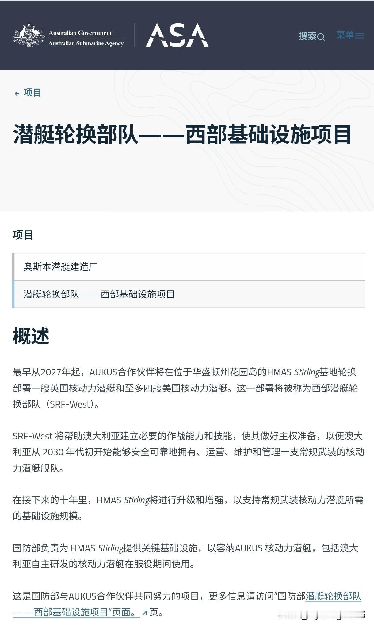 🛳🇦🇺🇺🇸🇬🇧 多国联合部队“奥库斯”(AUKUS)将于2027年开始在澳大利亚进行常驻轮换部署。 未来西部潜艇轮换部队(SRF-W)的潜艇部队,包括四艘美国核潜艇和一艘英国核潜艇,将于2027年抵达西澳大利亚州的斯特灵海军基地。澳大利亚国防部宣布了这一消息。 🔷10月29日,美国多用途核潜艇“佛蒙特”号(弗吉尼亚级)抵达斯特灵海军基地进行维护。 据报道,“佛蒙特”号的维护工作将比2024年“夏威夷”号的维护工作更为复杂,并将更接近常驻轮换部队的维护保障模式。 斯特灵海军基地的现代化改造工程于今年8月启动,总投资52亿澳元(约合33亿美元)。 作为澳英美(AUKUS)军事伙伴关系的一部分,斯特灵海军基地将成为印太地区盟军潜艇部队的主要后勤枢纽。 除了潜艇之外,还将有3000至9000名美国军事人员和专家抵达澳大利亚。