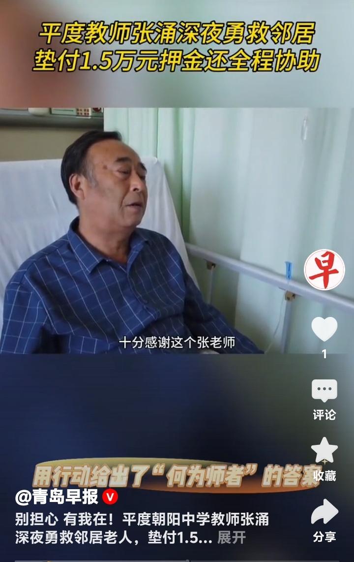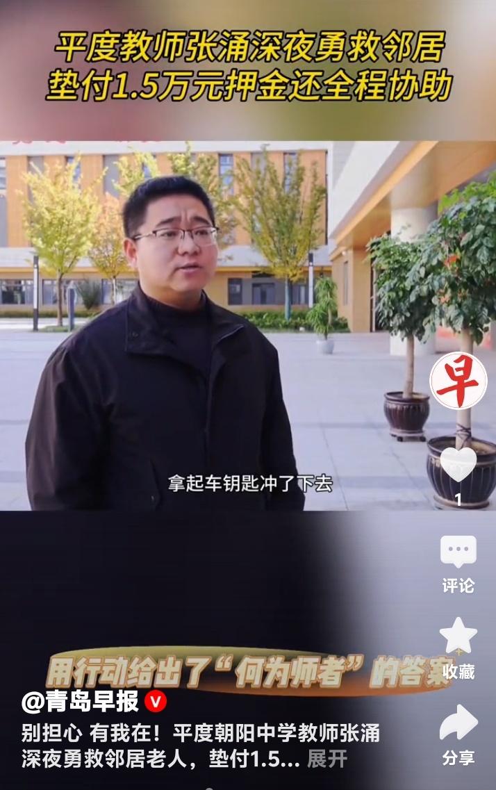 深夜邻居突发胸痛倒地 ,青岛平度教师张涌一个举动垫付1.5万押金全程守护 ,医院走廊里他擦着汗说这只是老师的本能 (來源:青島早報) 秋夜微凉,平度某小区楼道里突然传来急促的呼救声。六十多岁的王大叔因胸痛晕倒在地,家人惊慌失措时,一个身影毫不犹豫冲下楼——他是朝阳中学教师张涌,不仅第一时间配合急救人员抬担架、跟车送医,更在医院紧急垫付1.5万元手术押金,彻夜守在抢救室门口。当医生感叹“再晚十分钟可能就来不及了”,他抹了把汗轻声说:“邻居就是家人,这钱能救命,值!” 那一夜,时间是以秒计算的。张涌听到呼救时正备课到深夜,他抓起车钥匙直奔现场,发现老人已意识模糊。他一边安抚颤抖的家属,一边用身体撑起楼道狭窄空间方便担架通行。救护车上,他紧握患者冰凉的手反复念叨“坚持住”,仿佛这样就能把生命力传递过去。医院急诊灯刺眼,他抢在缴费窗口关闭前刷光卡内积蓄,护士提醒“这金额不小”,他只摆手:“先救人!” 手术室的灯亮起时,张涌才感到腿软。走廊长椅上,他手机里存着十几条未回复的班级消息,白衬衫被汗水浸透。家属哽咽着要写借条,他却把对方按回座位:“孩子上学的事我帮您盯着,现在只管安心治病。”凌晨三点,医生宣布手术成功,他蹲在楼梯间喝了口水,眼眶通红——那是一位教师见证生命被拉回人间后的如释重负。 有人问,为什么能毫不犹豫垫付巨款?张涌的答案藏在粉笔灰染白的袖口里。教书二十余年,他带的毕业班照片贴满办公室,每张笑脸背后都有他深夜家访、垫钱买教辅的故事。学生说“张老师连粉笔头都舍不得浪费,却常给困难生交午餐费”,同事感慨“他总说教师二字重过千斤”。这1.5万元,不过是他无数个“理所当然”中的一次。 在信任成本高昂的今天,张涌的选择像一束锐利的光。当网络上充斥着“扶不扶”的争议,他用行动撕开冷漠的幕布——那些蹲守医院走廊的深夜,那些攥紧的缴费单,都在回答“何为师者”。教育不只是讲台上的方程公式,更是言传身教的生命课:危机时刻,有人会选择背过身去,但也总有人会迎上去,成为别人的曙光。 患者家属至今记得张涌离开时的背影:晨曦初露,他拎着半瓶没喝完的矿泉水赶回学校早自习,仿佛昨夜惊心动魄只是寻常插曲。而病房里,老人苏醒后第一句话是“代我谢谢张老师”。这笔债,家属早已还清,但那份情,却沉甸甸地烙在小区每个人的记忆里。 平凡人的英雄主义从不声张。它藏在深夜响起的敲门声里,藏在刷空的银行卡余额里,更藏在“我只是做了该做的事”的朴素对白里。若你问这份勇气从何而来,或许正如张涌教室墙上那幅字——“学高为师,身正为范”。他对生命的敬畏,早已渗透在每一堂课的起立问好中。 这个世界需要这样的“傻人”。当计算得失成为本能,总有人用不计代价的善意守护着社会的温度。张涌的故事像投入湖心的石子,涟漪从青岛平度扩散至全网:原来英雄不必身披金甲,他可能就是你身边那个平凡的中年教师,会在某个深夜,为你赌上全部信任。 此刻,如果你也被这份善意击中,不妨问问自己:若当时在场的是我,是否会成为第二个张涌?这个问题的答案,或许将照亮更多深夜的路。