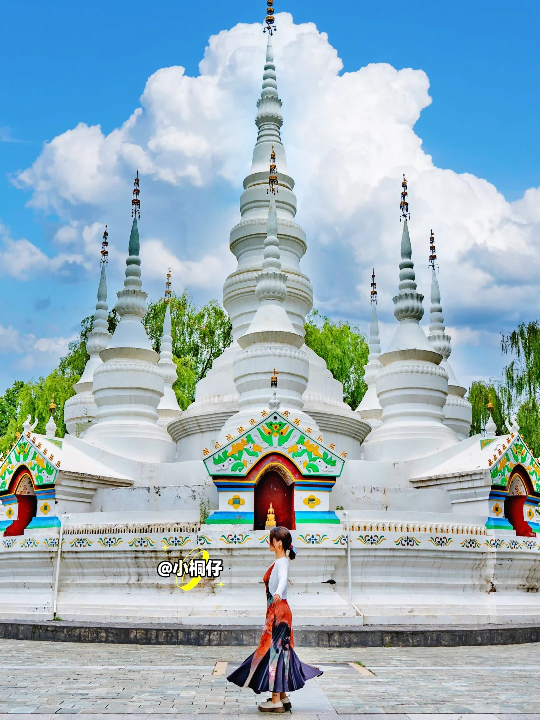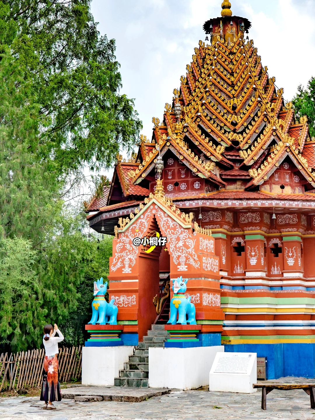 金光闪烁的白塔与傣家竹楼相得益彰,仿佛置身于西双版纳