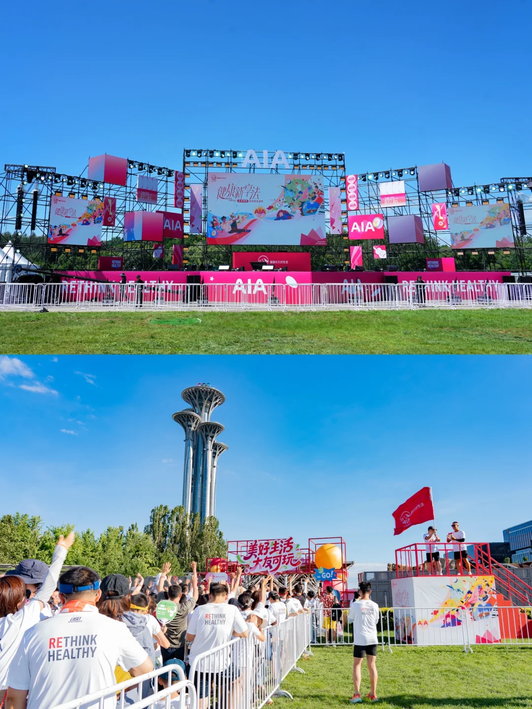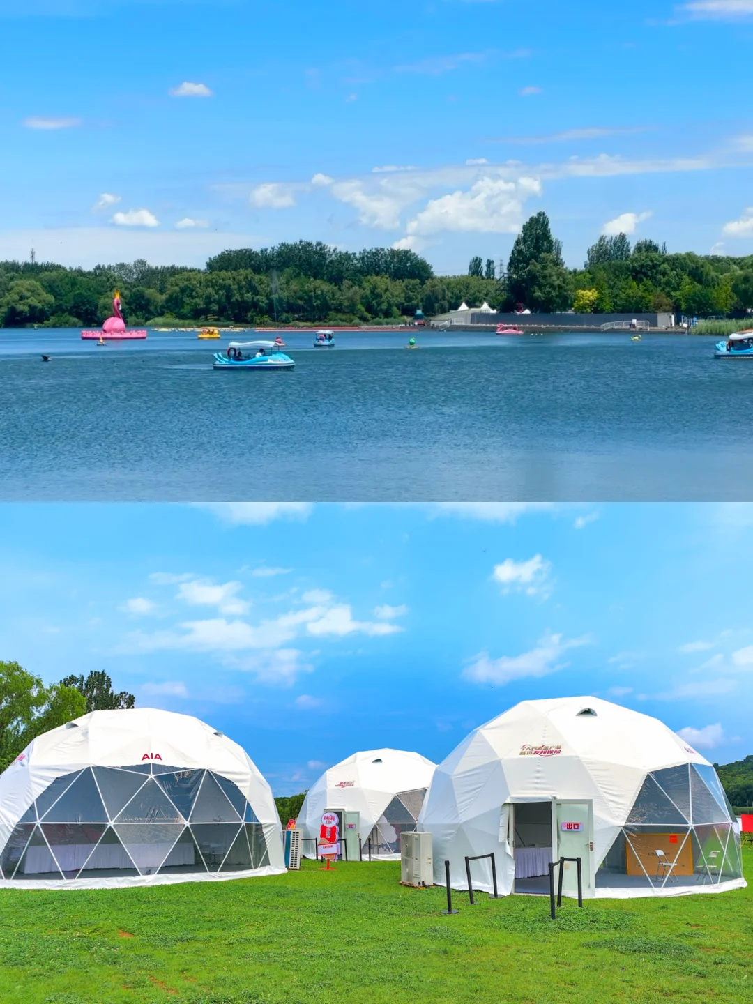 周末不定期会上演大型喷泉表演⛲️大草坪上总会有各种周末活动。这周在这里参加了一场健康又有趣的友邦活动🏃在草坪上露营⛺️看表演,参加有趣的亲子轻运动互动打卡,了解友邦的健康理念~最后大家穿着统一的运动服一起出发,在奥森完成5km的环湖跑,获得美美的🥇,收获很有意义的周末时光
