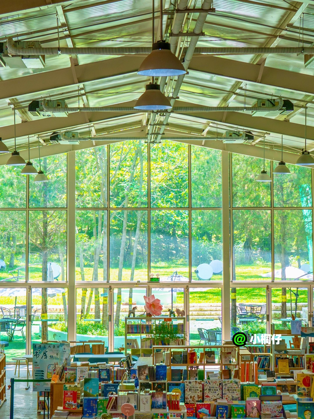 天气太热的时候,躲进书局。这里有一整面可以看到森林的窗体,在这儿发呆喝咖啡,太chill了