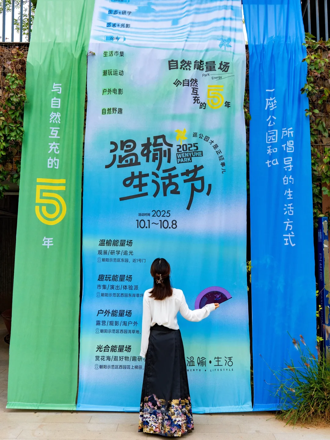 🚶♀️光合能量场 (芸上梯田向日葵🌻) ➟ 趣玩能量场 (展览市集) ➟ 户外能量场 (户外露营)➟ 温榆能量场 (玉湖摇橹船,光影秀)