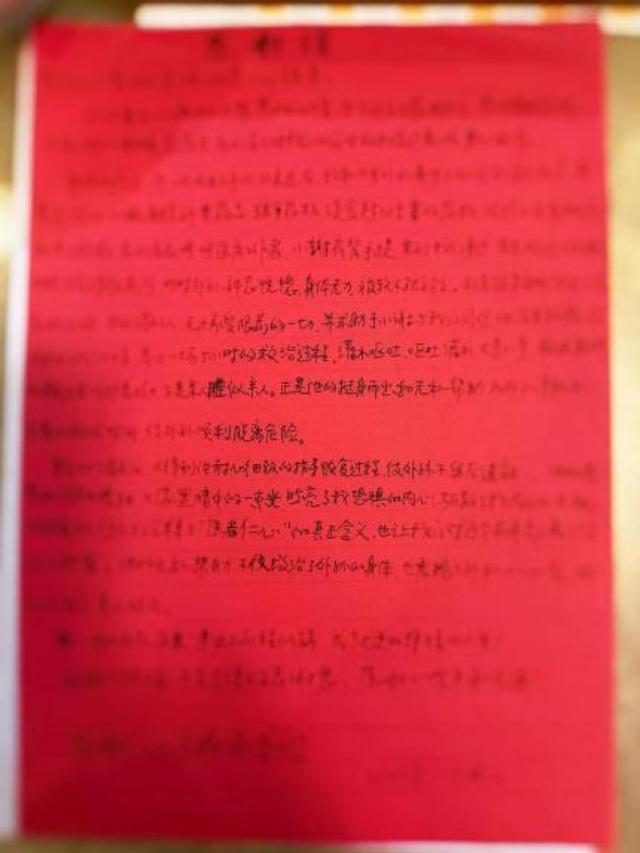 患者家属手写的感谢信