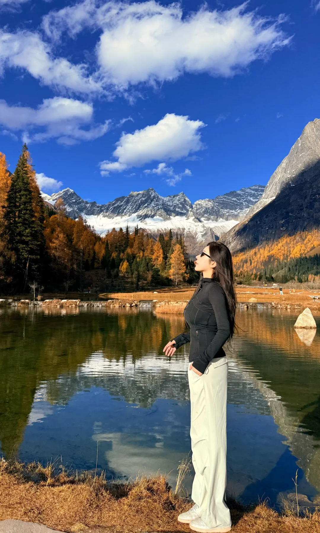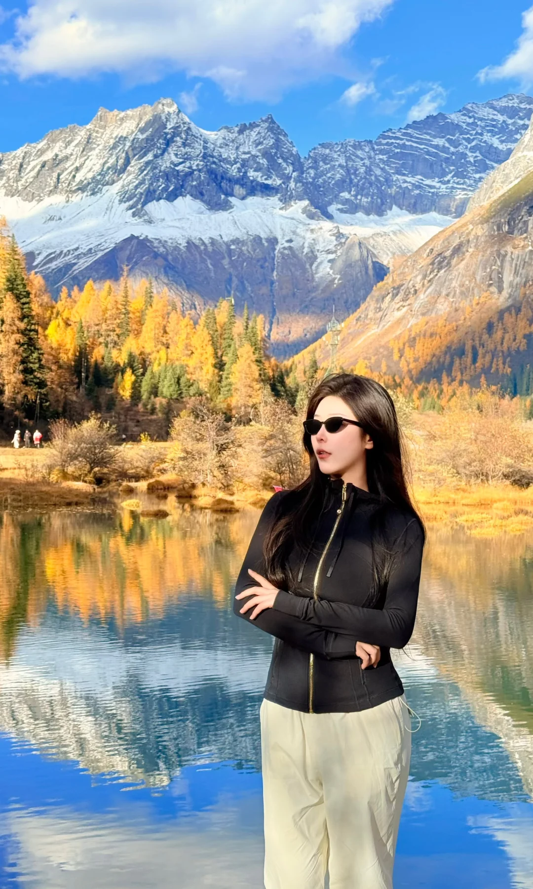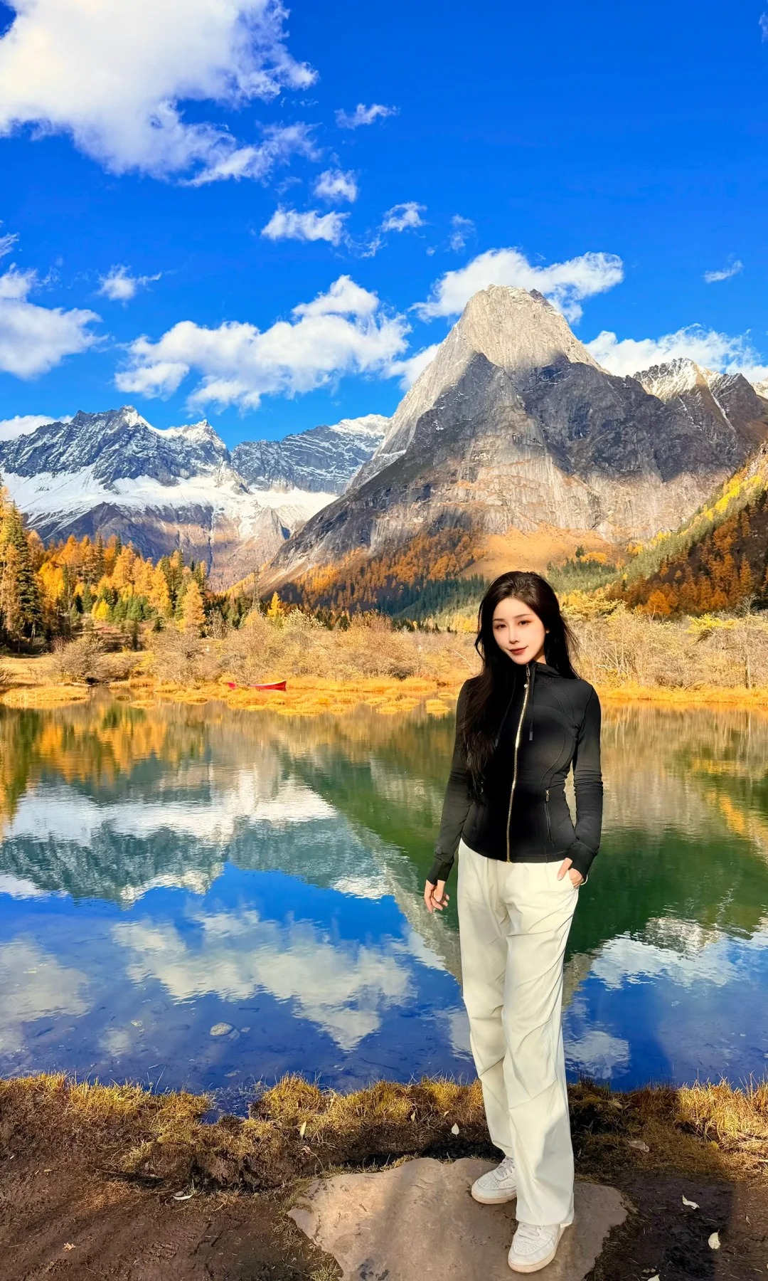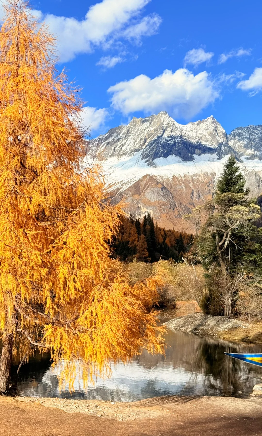 下车就是湖边 可以观赏雪山+彩林倒影