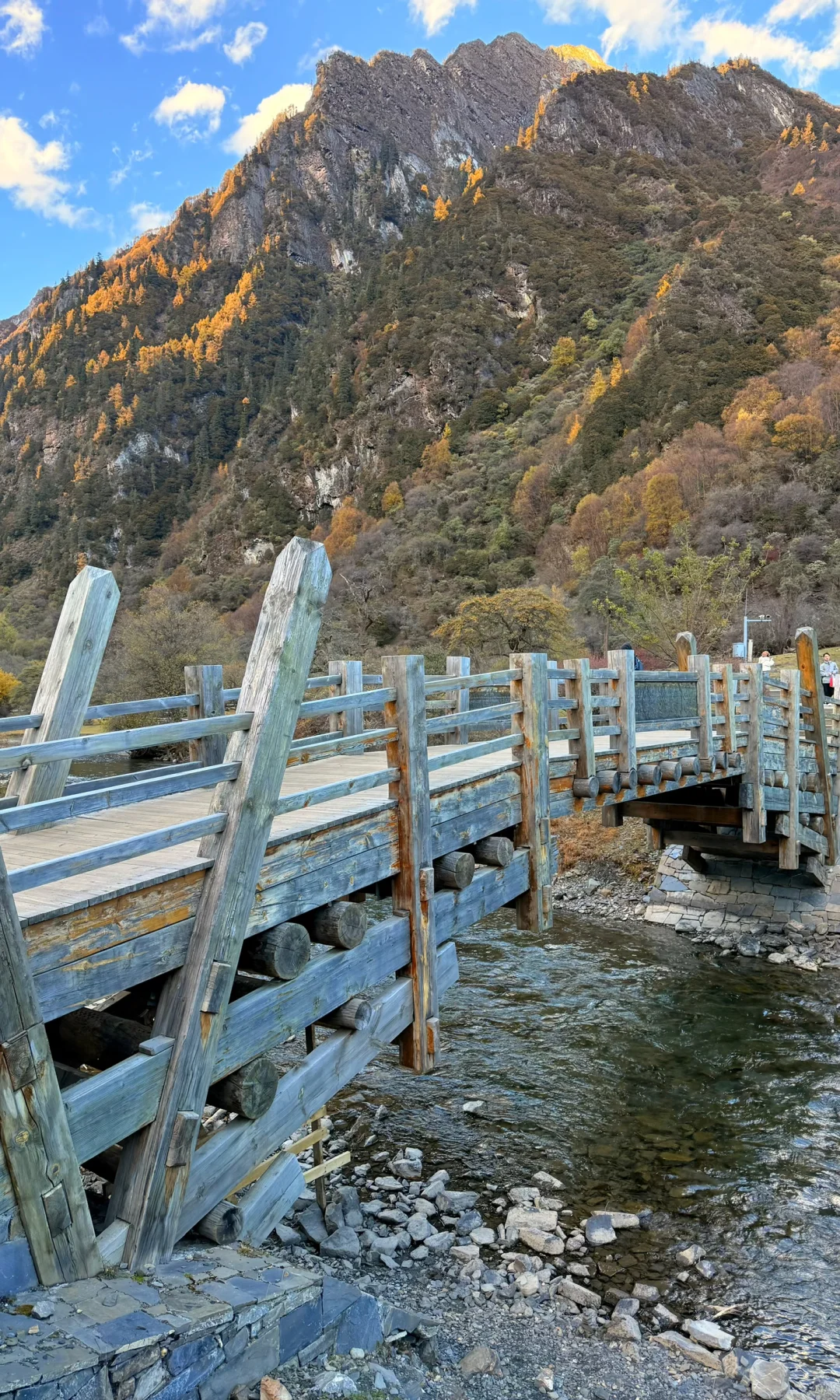 徒步过去的栈道也十分美丽 🈶雪山、彩林、溪水