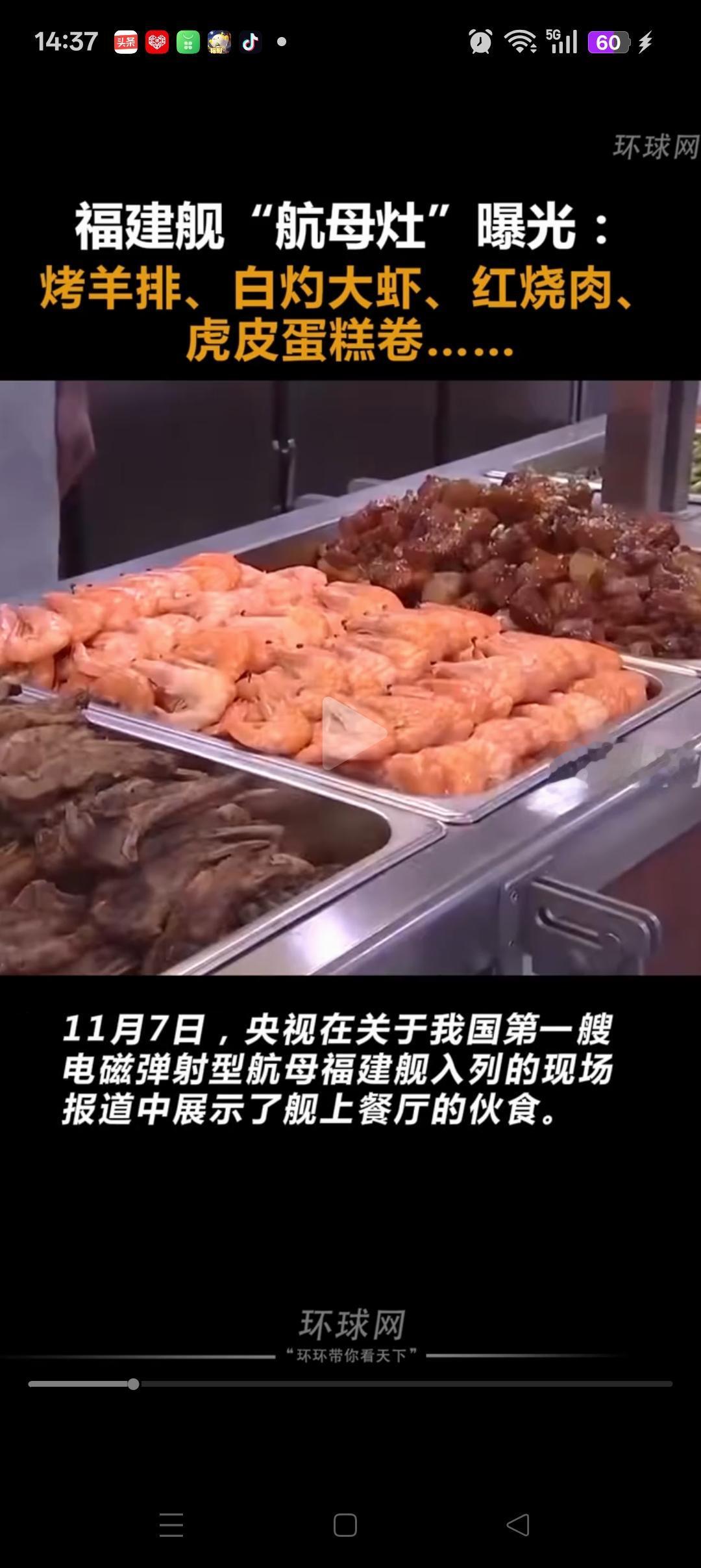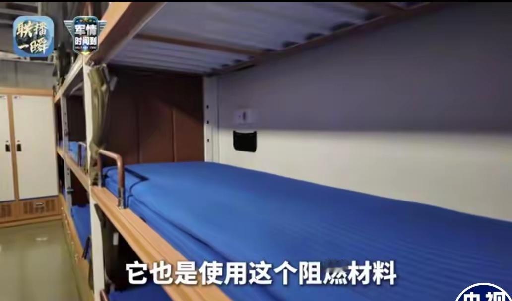 福建舰入列,3个细节,值得关注[玫瑰]! 1、床位是分上中下3层的,比较紧凑:虽然看着有点小,但是长度也超过了2米,高度超过了60公分,还是够用了。睡个好觉,休息下问题不大。 2、被子不需要叠“豆腐块”,可以平放在床上。且被子是阻燃材料的,就算遇到火,也烧不起来。温度也是长期控制在26℃,很舒服 3、伙食很丰富:不仅有红烧肉,大虾,烤羊排,还有各种各样的点心,看的真让人羡慕 希望下一个舰艇也能尽快到来[玫瑰][玫瑰]