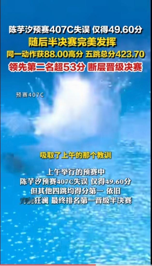 这才是真正的失误,陈芋汐在今天上午的预赛中,跳出了49.6分的超低分,根据陈芋汐的平时成绩,属于明显的失误,所谓的失误,陈芋汐的49分,才是真正的失误。某个队员,如果成绩始终保持在80分左右,偶尔出现低分,这就是失误,如果,该队员从历史最高分,一路下滑到低分,不再上升,在技术上,这不属于失误,而是技术下滑。失误和下滑,完全不是一回事。