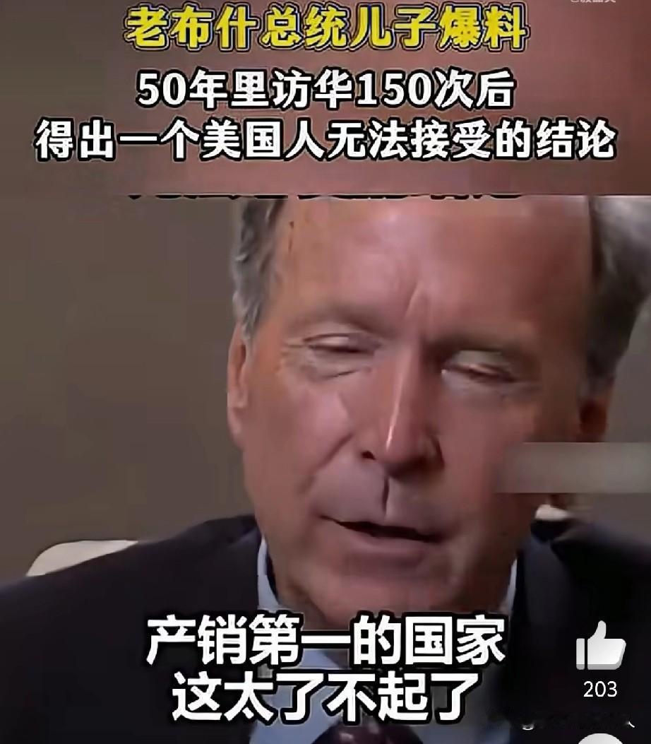 我的天呐! 整整用了50年,老布什的儿子得出了一个结论,而且这个结论是让美国人无法接受的。[捂脸] 人家都说10年磨一剑,难道我们这是50年磨一剑嘛,太会韬光养晦了吧? 不过,老布什的儿子也太没有预见性了,要不,怎么惊讶的眼泪都要流出来了。