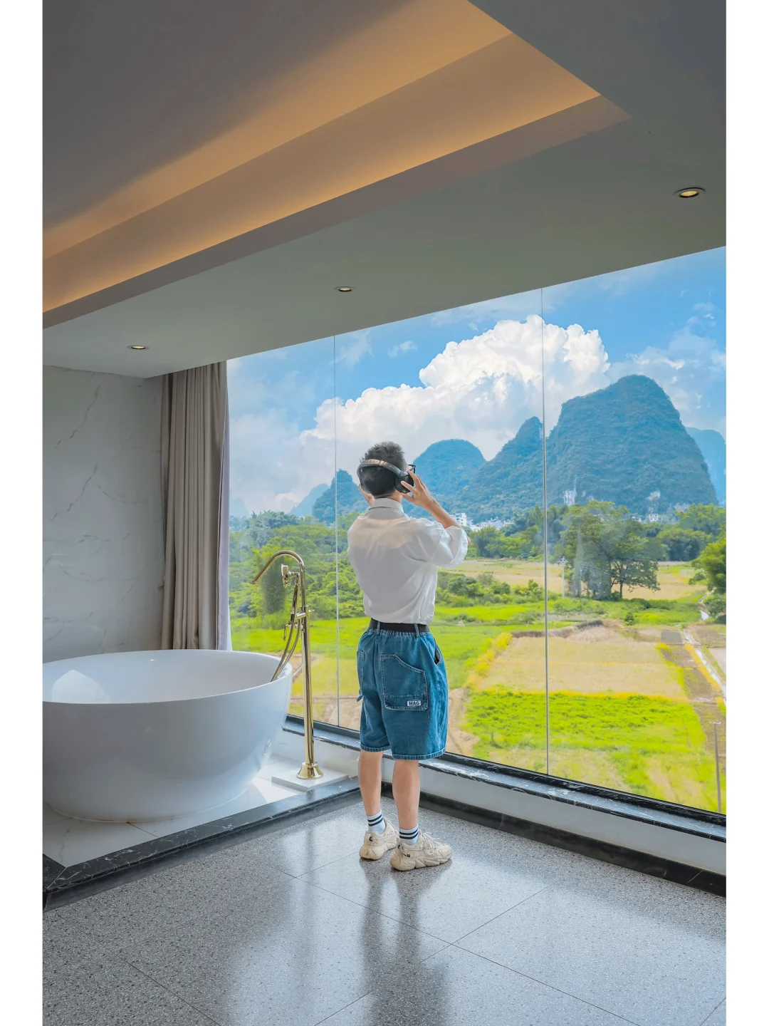 站在大大的落地窗边🪟
