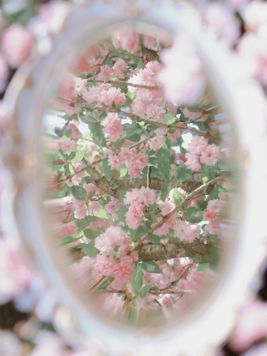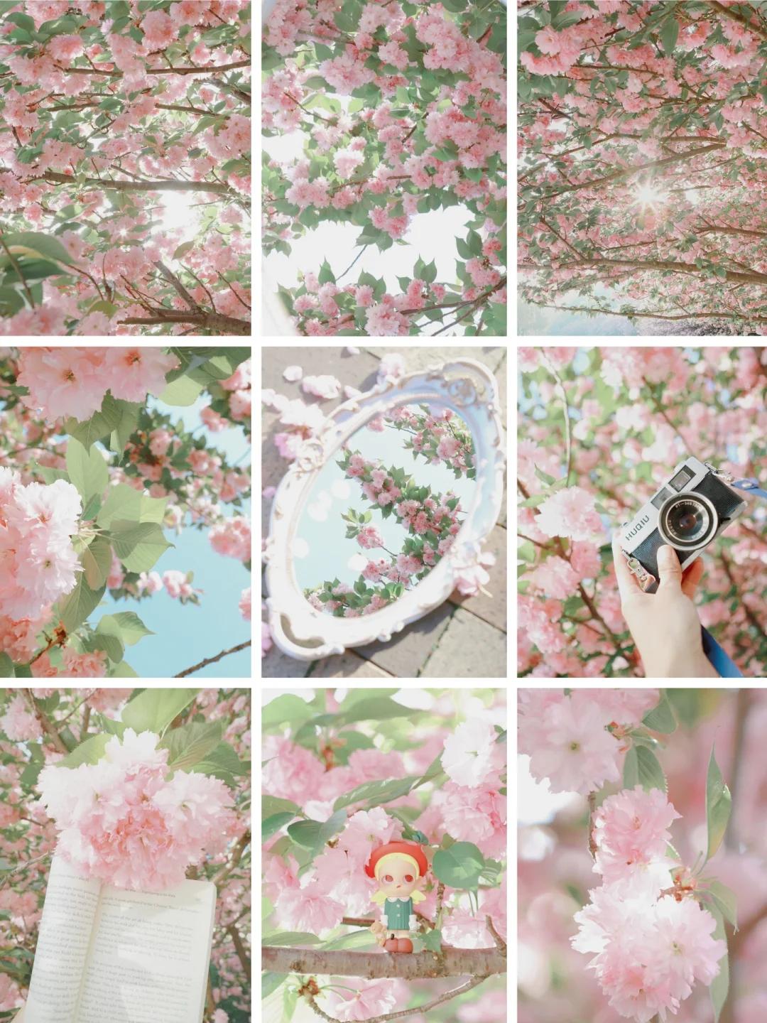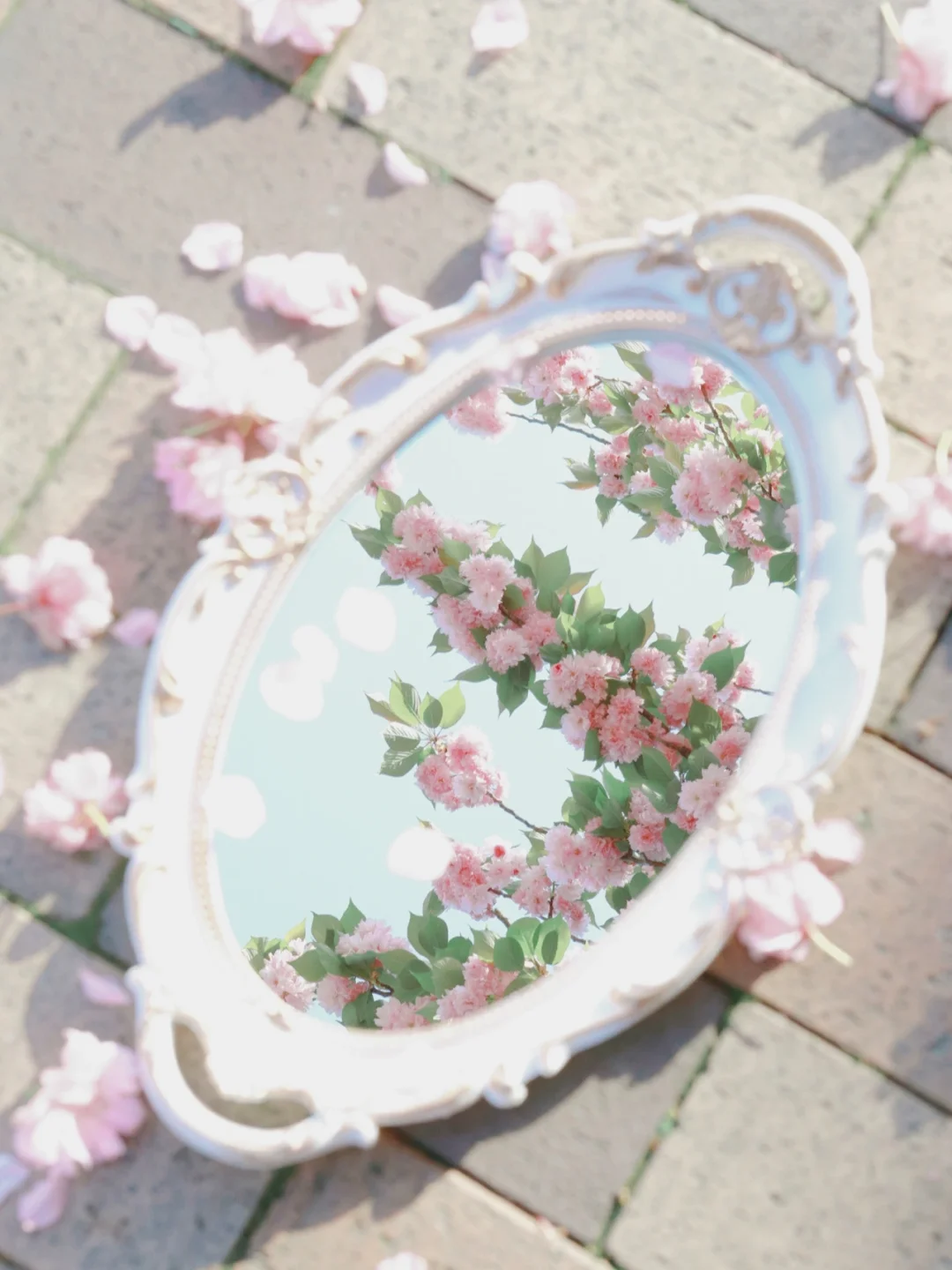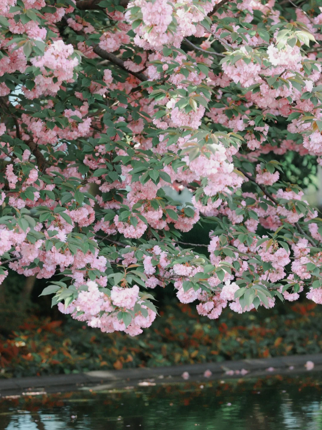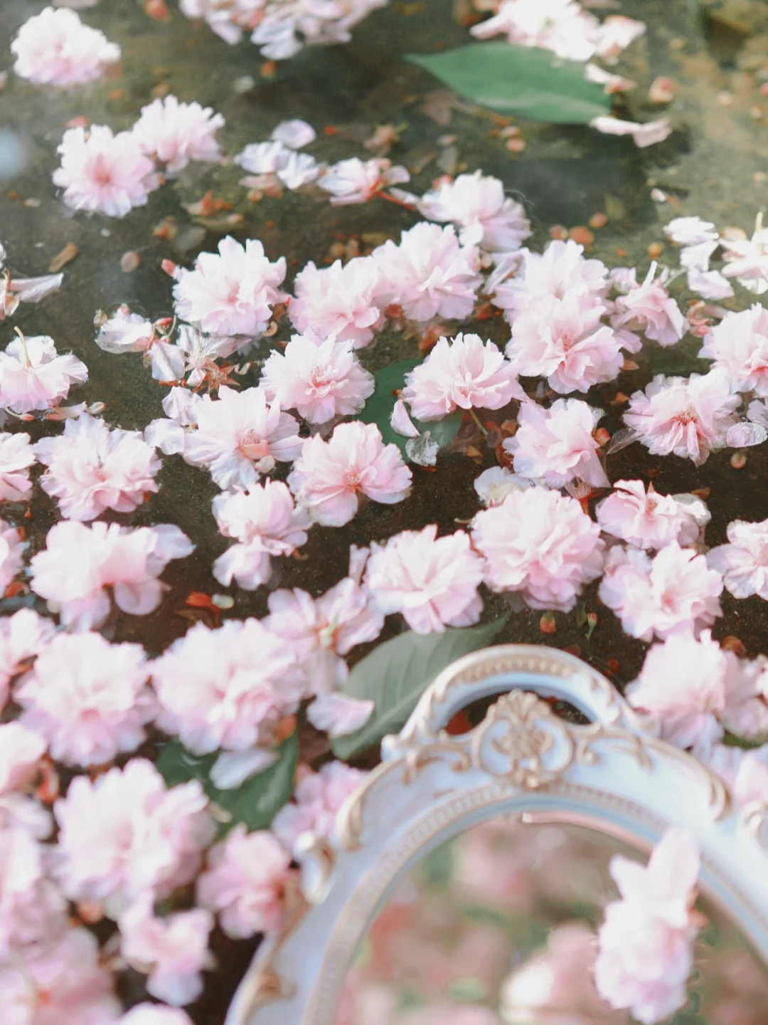 花瓣🥀飘落在樱花树[氛围感R]前的水池🫧里
