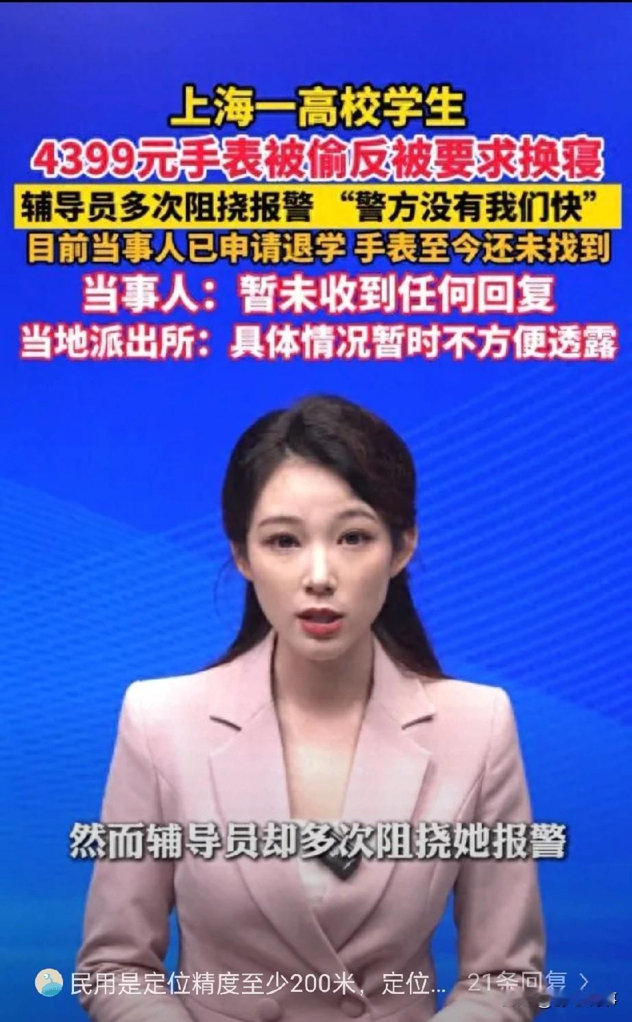 上海某大学女生价值4399元的苹果手表在宿舍丢失,用手机定位查询,显示手表最后位