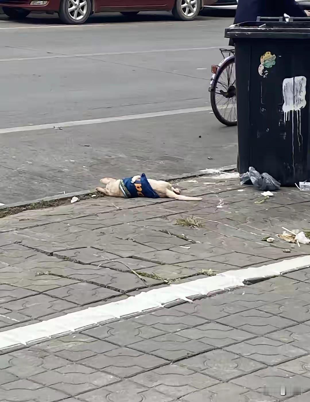 太可怜了,这天一位小哥哥去晨跑,当他跑到一个垃圾桶附近的时候,看到一只穿着蓝色马甲的狗狗倒在垃圾桶旁边,已经奄奄一息了。 善良的他顿时心生怜悯,于是就把它带去宠物医院抢救,可遗憾的是也不知道是它自己吃了剧毒的食物,还是有人投毒,最终没能救回它。最终小哥哥只能怀着难过的心情安葬了这只可怜的狗狗。