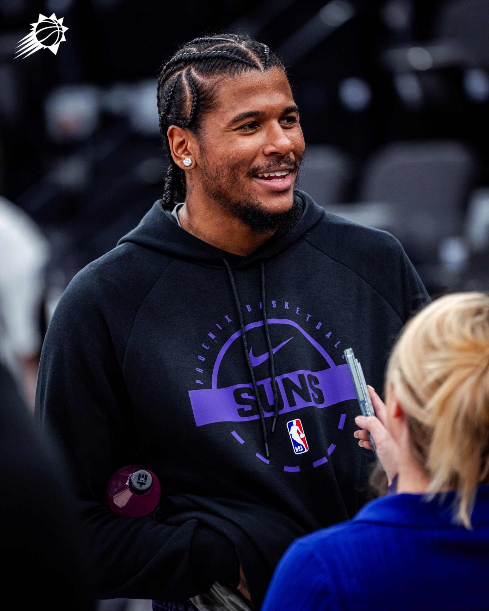 太阳社媒分享球员赛前踩场训练的瞬间,杰伦-格林表情轻松