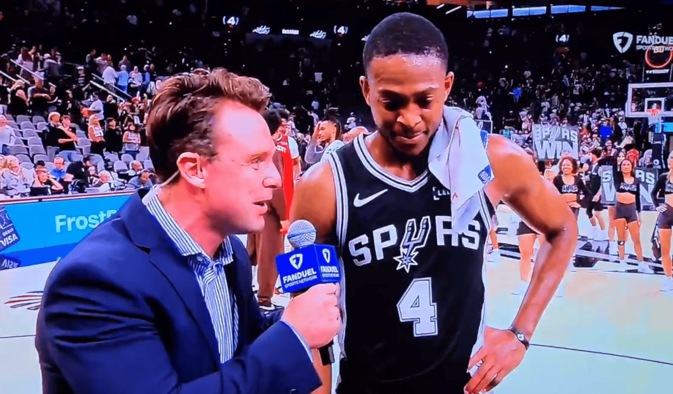 赛后,达龙-福克斯接受了记者的采访,谈到了队友维克托-文班亚马时,他表示: