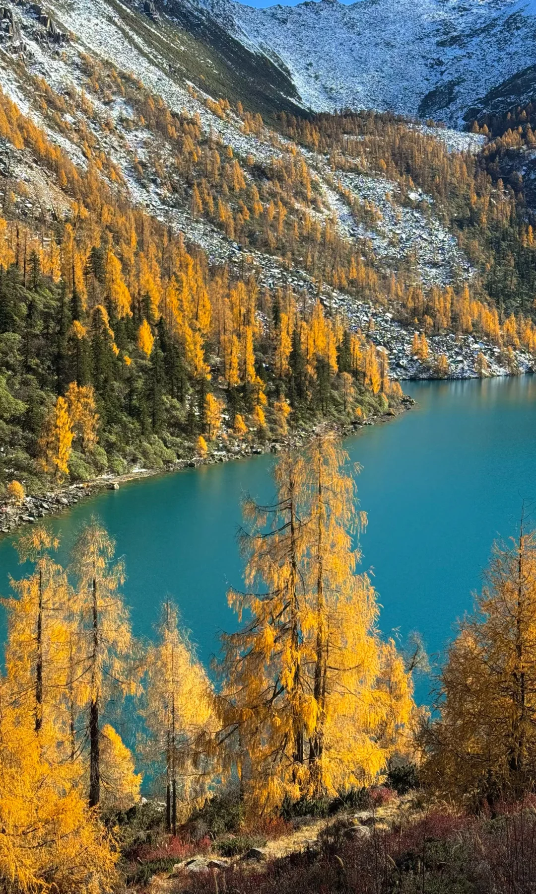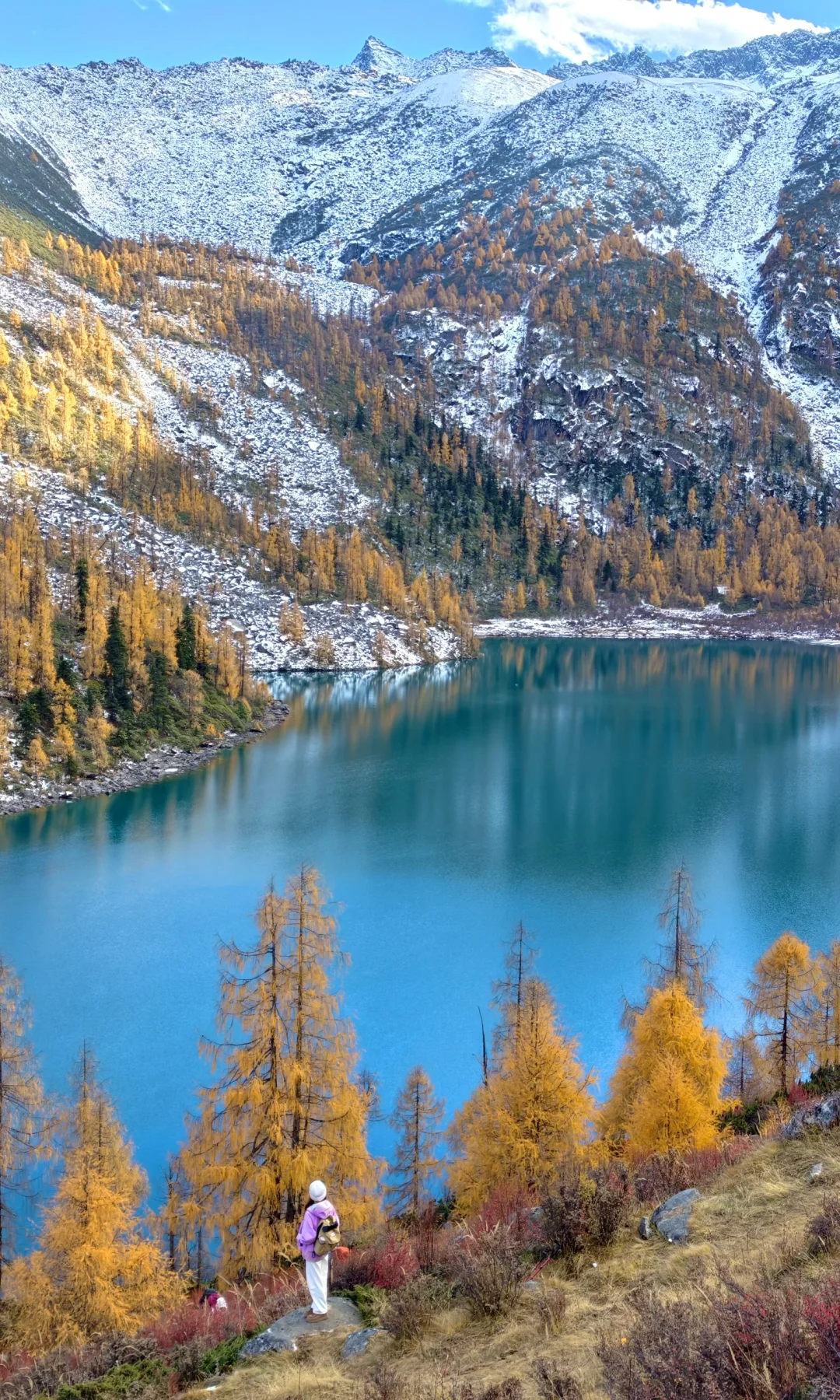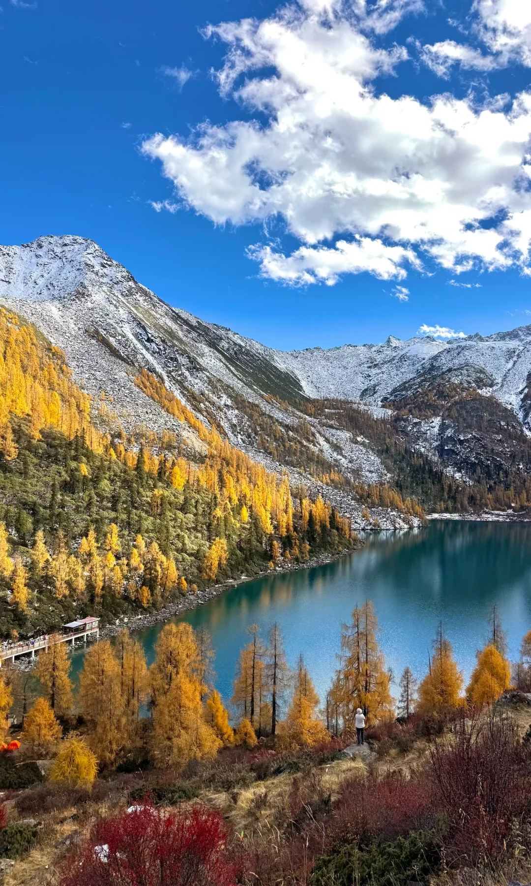 作为一个四川人 川西的秋其实看过很多次了 很多地方都有去过 但是党岭这个地方却是第一次来 而且第一次来就被震撼了 雪山、彩林还有被彩林包围的蓝色湖泊 真的太太太美了 如果没有去过党岭的,强烈推荐给你们 一些小tips: [一R]如果只是玩一天,选择到达甲玉拉措就可以了,门票20,摩托车往返是160/人,单程80/人 [二R]到达甲玉拉措,单边是5km,沿途没有补给站,终点才会有,但是有简易厕所和公里数标牌,爬升坡度不算太大,全程机耕道(和摩托车共享),难度不大,建议上山徒步(因为去的时候光比较好,沿途风景也很美),回程比较累了可以选择摩托车 [三R]景区里的摩托车号称疯狂摩托车,骑的比较野,下山感受了一下,其实挺刺激的,就是一定要抱紧师傅,路会比较颠,注意安全,比较怕的,一定要叮嘱师傅骑慢点[暗中观察R][暗中观察R] [四R]到达甲玉拉措后,在补给站小房子的后面有一条路可以继续往上爬,山上的风景不会让你失望的,绝对值得爬上去(虽然爬坡真的很累[扶额R])