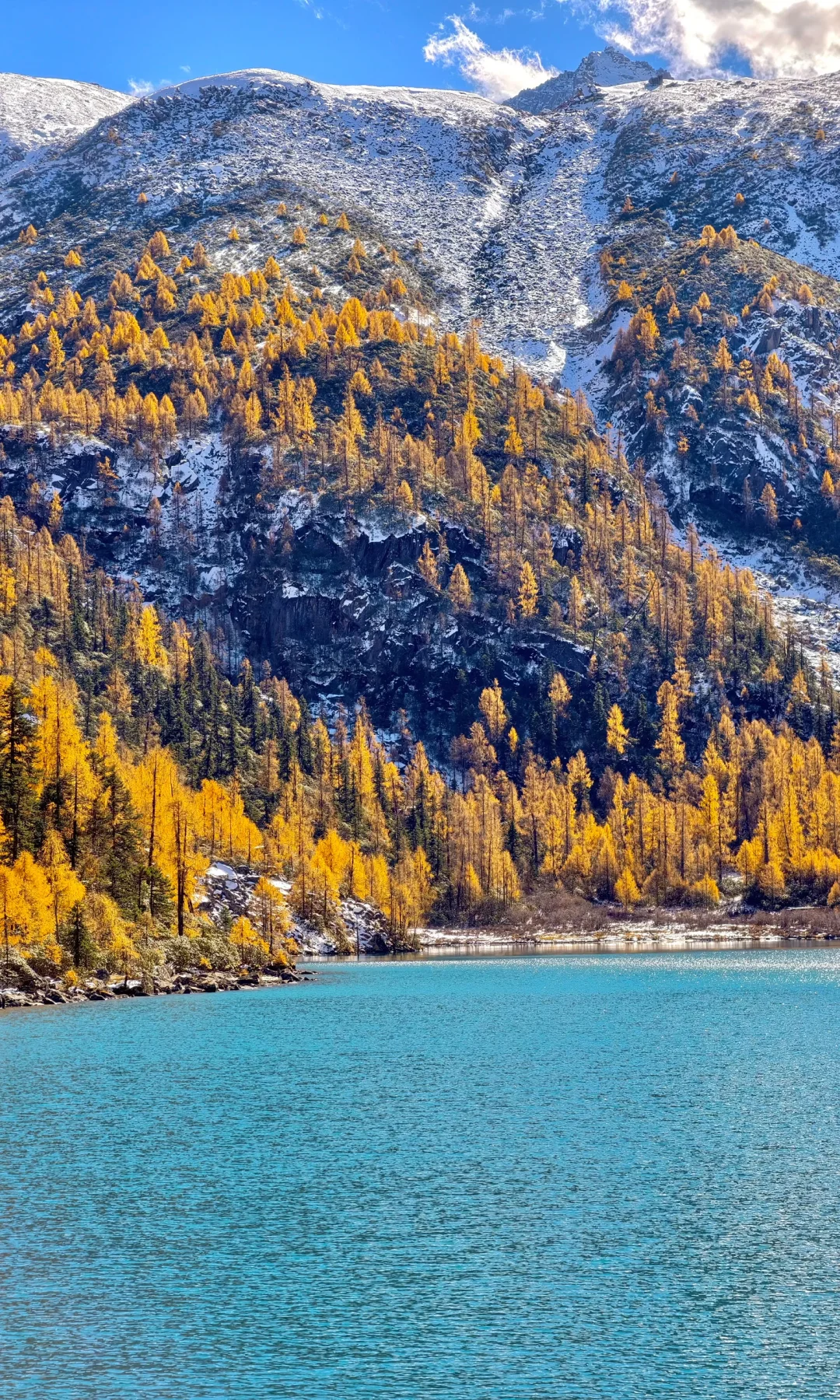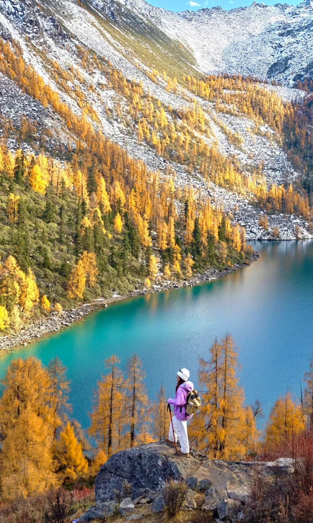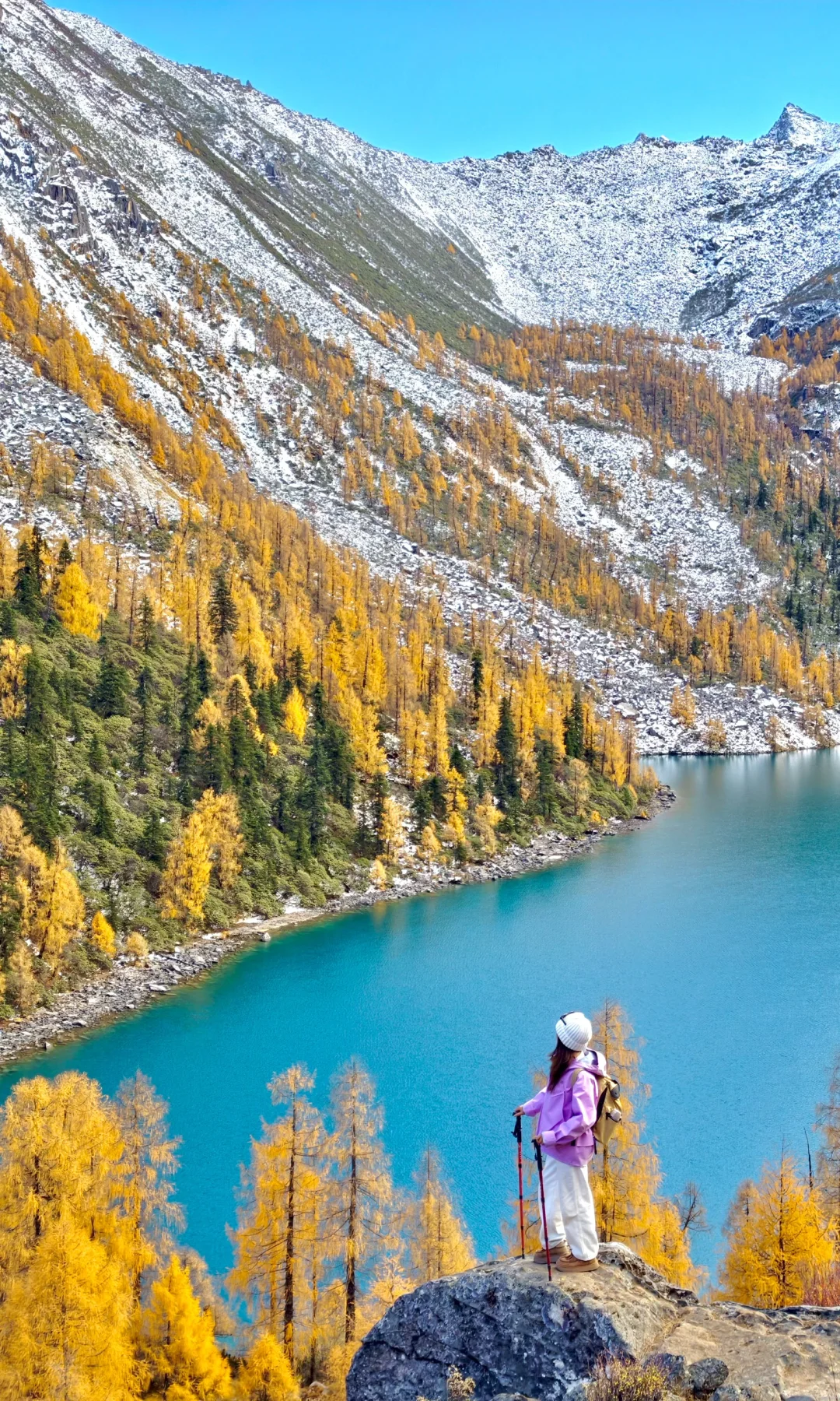 作为一个四川人 川西的秋其实看过很多次了 很多地方都有去过 但是党岭这个地方却是第一次来 而且第一次来就被震撼了 雪山、彩林还有被彩林包围的蓝色湖泊 真的太太太美了 如果没有去过党岭的,强烈推荐给你们 一些小tips: [一R]如果只是玩一天,选择到达甲玉拉措就可以了,门票20,摩托车往返是160/人,单程80/人 [二R]到达甲玉拉措,单边是5km,沿途没有补给站,终点才会有,但是有简易厕所和公里数标牌,爬升坡度不算太大,全程机耕道(和摩托车共享),难度不大,建议上山徒步(因为去的时候光比较好,沿途风景也很美),回程比较累了可以选择摩托车 [三R]景区里的摩托车号称疯狂摩托车,骑的比较野,下山感受了一下,其实挺刺激的,就是一定要抱紧师傅,路会比较颠,注意安全,比较怕的,一定要叮嘱师傅骑慢点[暗中观察R][暗中观察R] [四R]到达甲玉拉措后,在补给站小房子的后面有一条路可以继续往上爬,山上的风景不会让你失望的,绝对值得爬上去(虽然爬坡真的很累[扶额R])