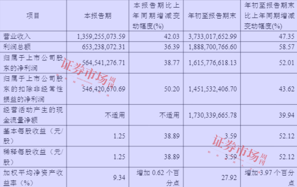 进一步来看艾力斯,这家2020年12月初上市的公司即将迎来登陆资本市场五周年。从三季报来看,该公司交出的是一份全线上涨的成绩单,具体说来,公司实现营业收入37.33亿元,同比增长47.35%;实现归母净利润16.16亿元,同比增长52.01%;实现扣非净利润14.52亿元,同比增长43.62%;实现毛利率96.79%,同比提升1.03个百分点;实现净利率43.28%,同比上升3.16个百分点;实现每股收益3.59元,同比增长52.12%。